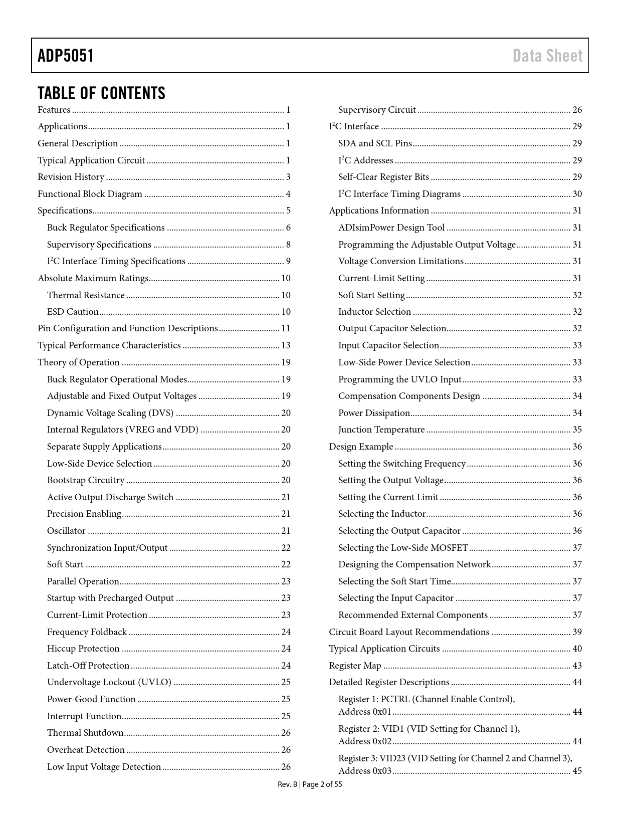 Pages / Page55 / 2 — ADP5051. Data Sheet. TABLE OF CONTENTS