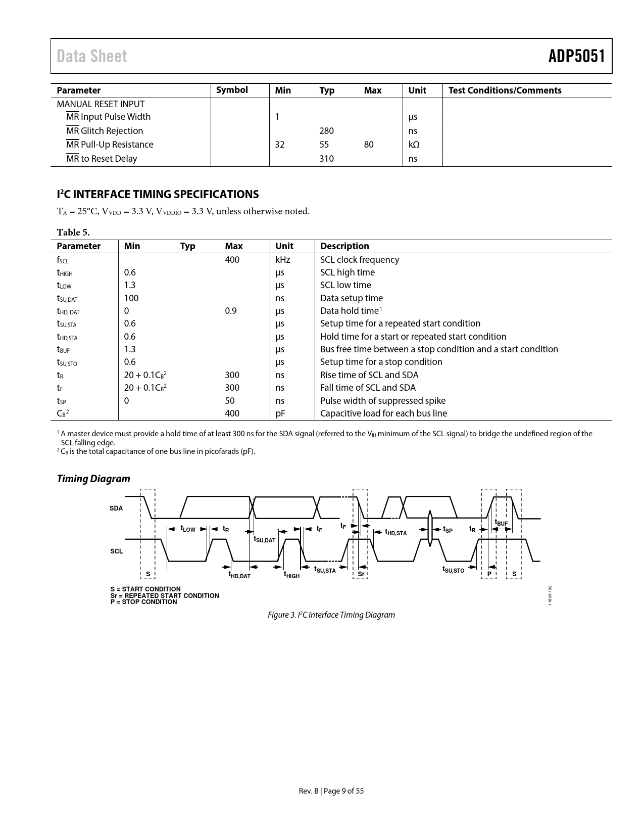 Data Sheet. ADP5051. Parameter. Symbol. Min. Typ. Max. Unit. Test Conditions/Comments. I2C INTERFACE TIMING SPECIFICATIONS