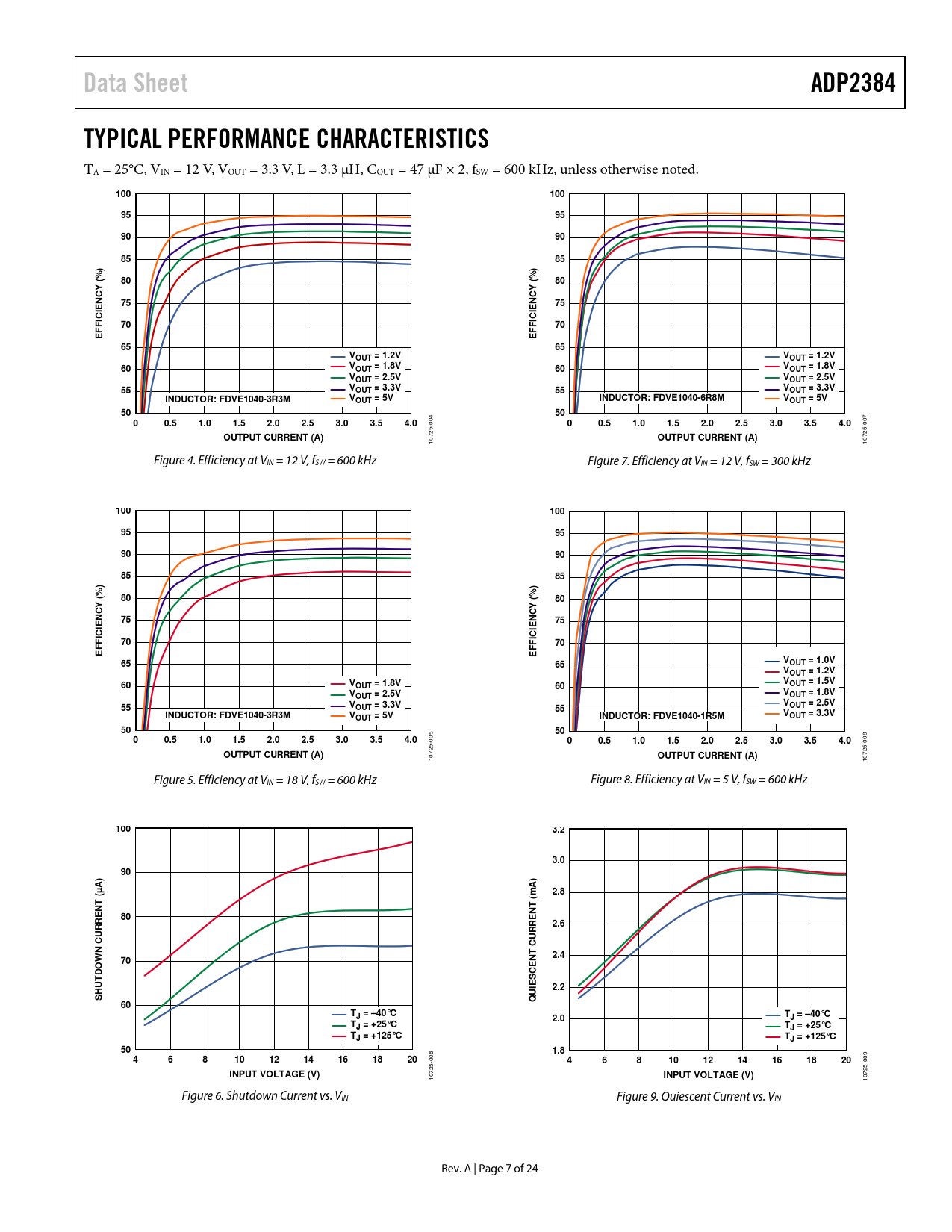 Data Sheet. ADP2384. TYPICAL PERFORMANCE CHARACTERISTICS. 100. NCY. ICI. VOUT = 1.2V. VOUT = 1.8V. VOUT = 2.5V. VOUT = 3.3V