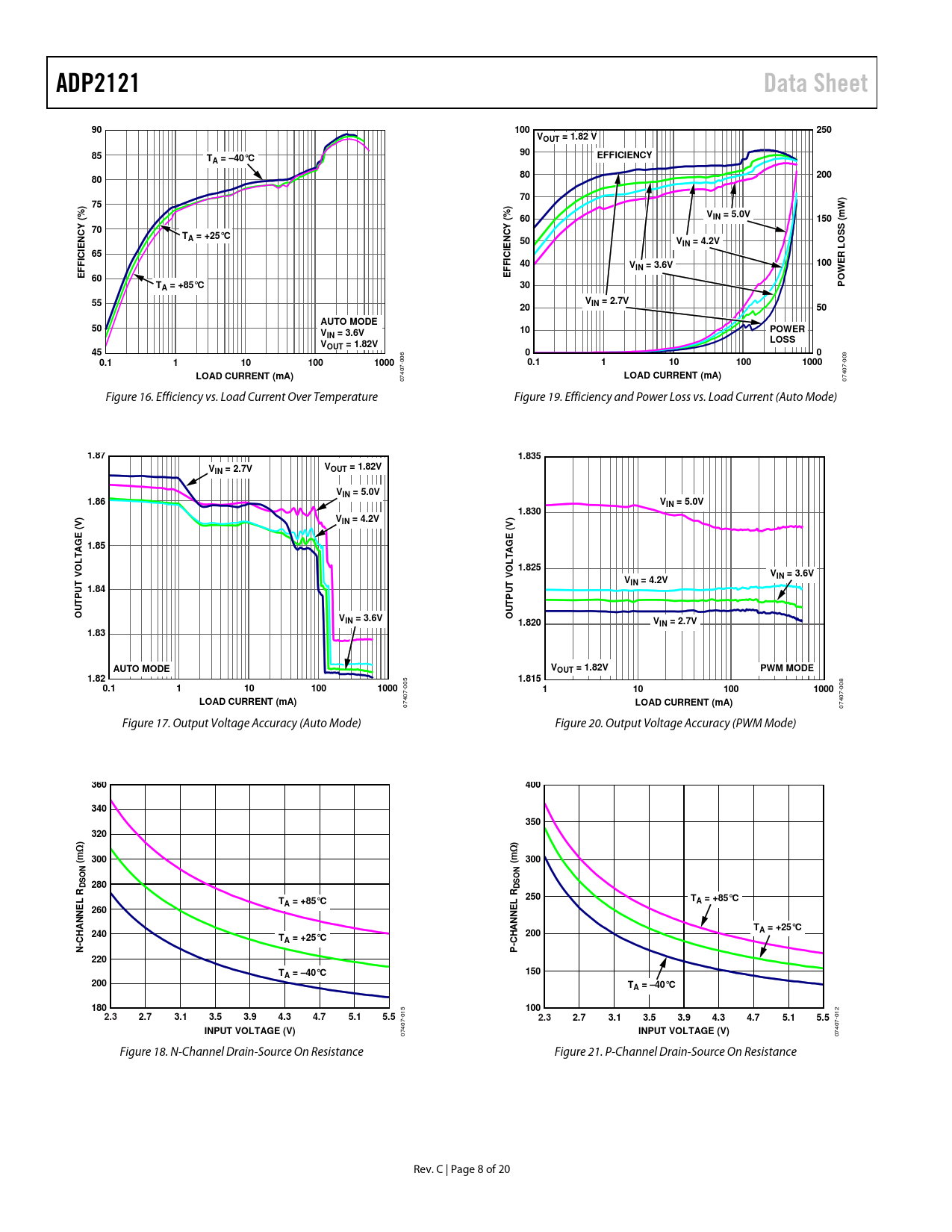 | Pages / Page | 20 / 8 — ADP2121. Data Sheet. 100. 250. VOUT = 1.82 V. EFFICIENCY. A = –40°C. 200. … |