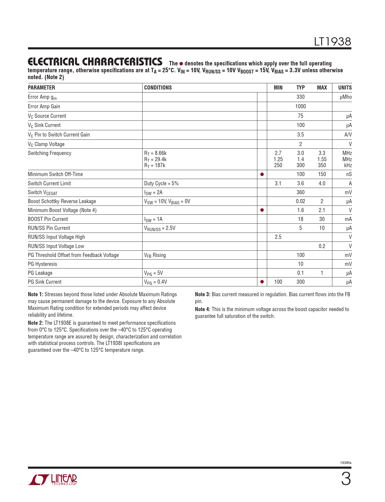 denotes the specifications which apply over the full operating temperature range, otherwise specifications are at TA = 25°C. VIN = 10V, VRUN/SS = 10V VBOOST = 15V, VBIAS = 3.3V unless otherwise noted. (Note 2) PARAMETER CONDITIONS MIN TYP MAX UNITS