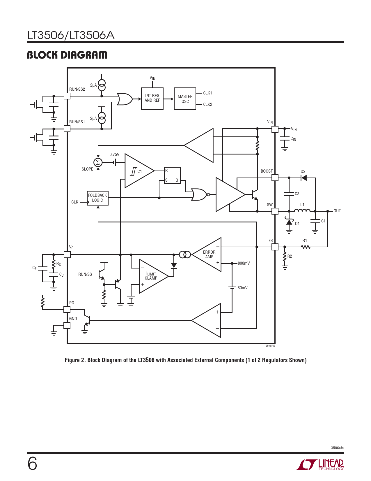 BLOCK DIAGRAM. Figure 2. Block Diagram of the LT3506 with Associated External Components (1 of 2 Regulators Shown)