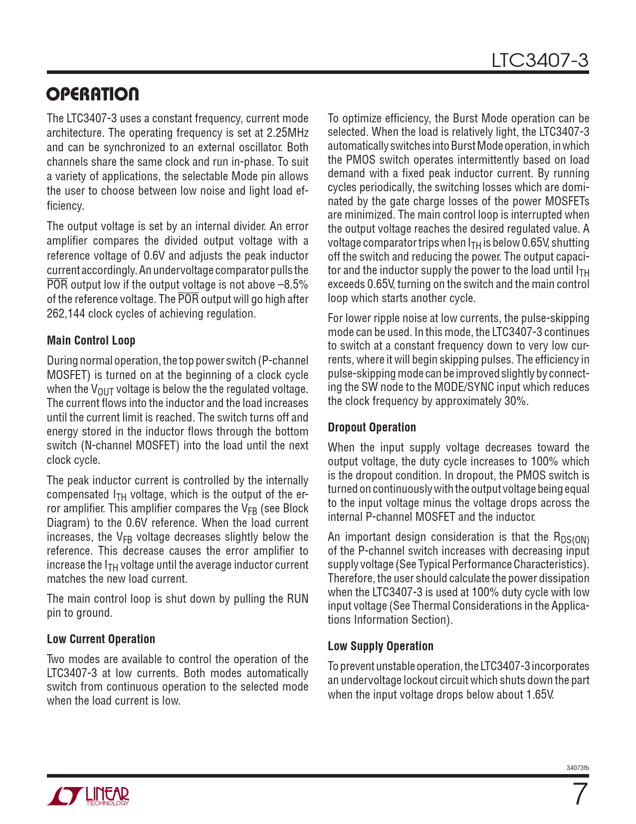 Pages / Page16 / 7 — OPERATION. Main Control Loop. Dropout Operation. Low Current Operation. …