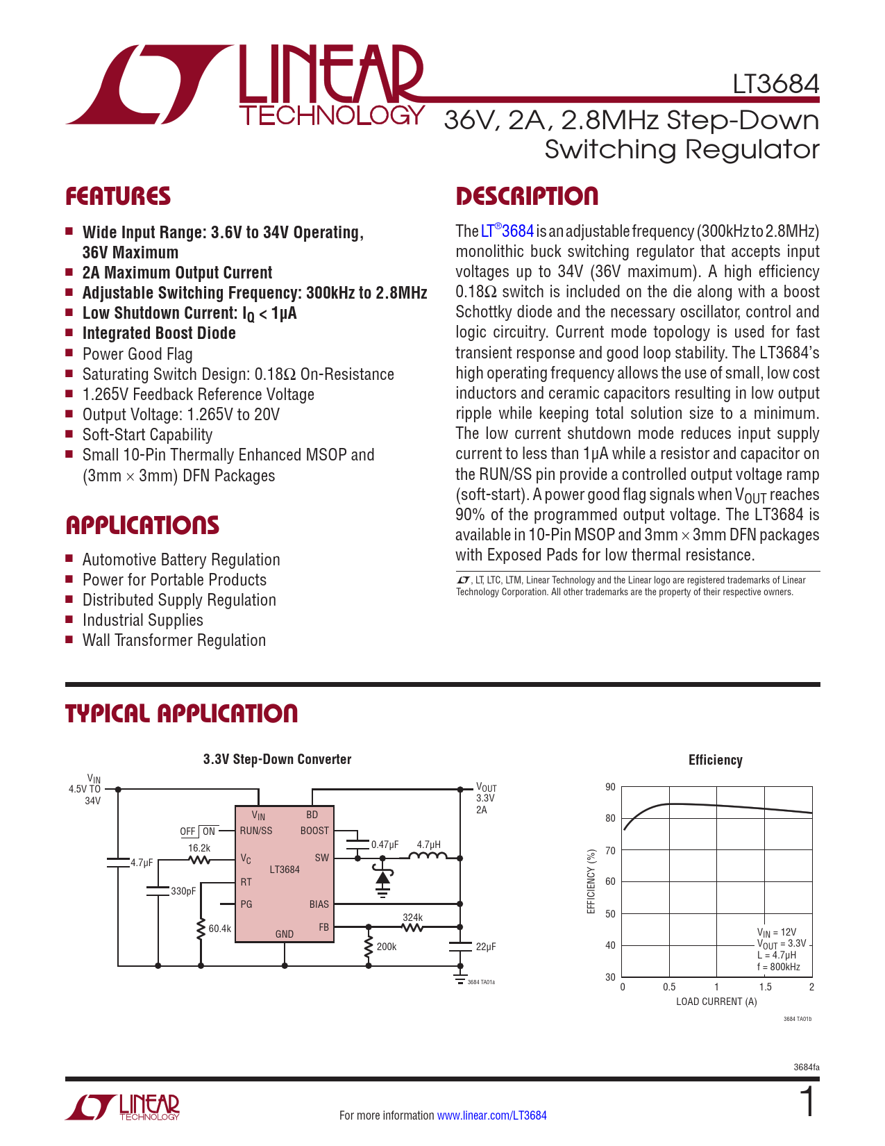 LT3684 36V, 2A, 2.8MHz Step-Down Switching Regulator