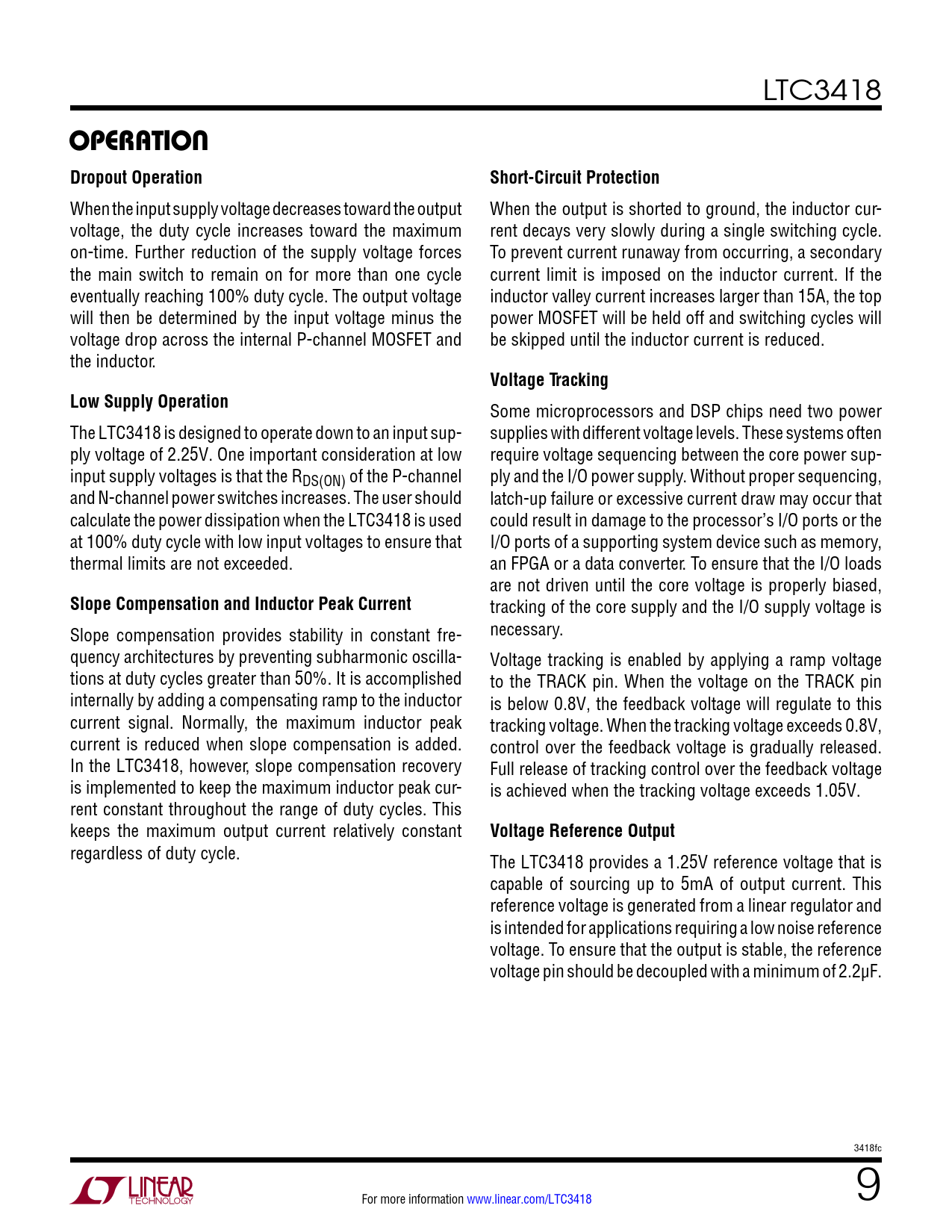 Pages / Page22 / 9 — operaTion. Dropout Operation. Short-Circuit Protection. Voltage Tracking. …