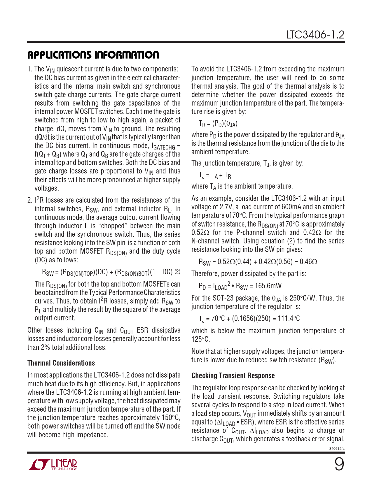 ture is lower due to reduced switch resistance (RSW). In most applications the LTC3406-1.2 does not dissipate