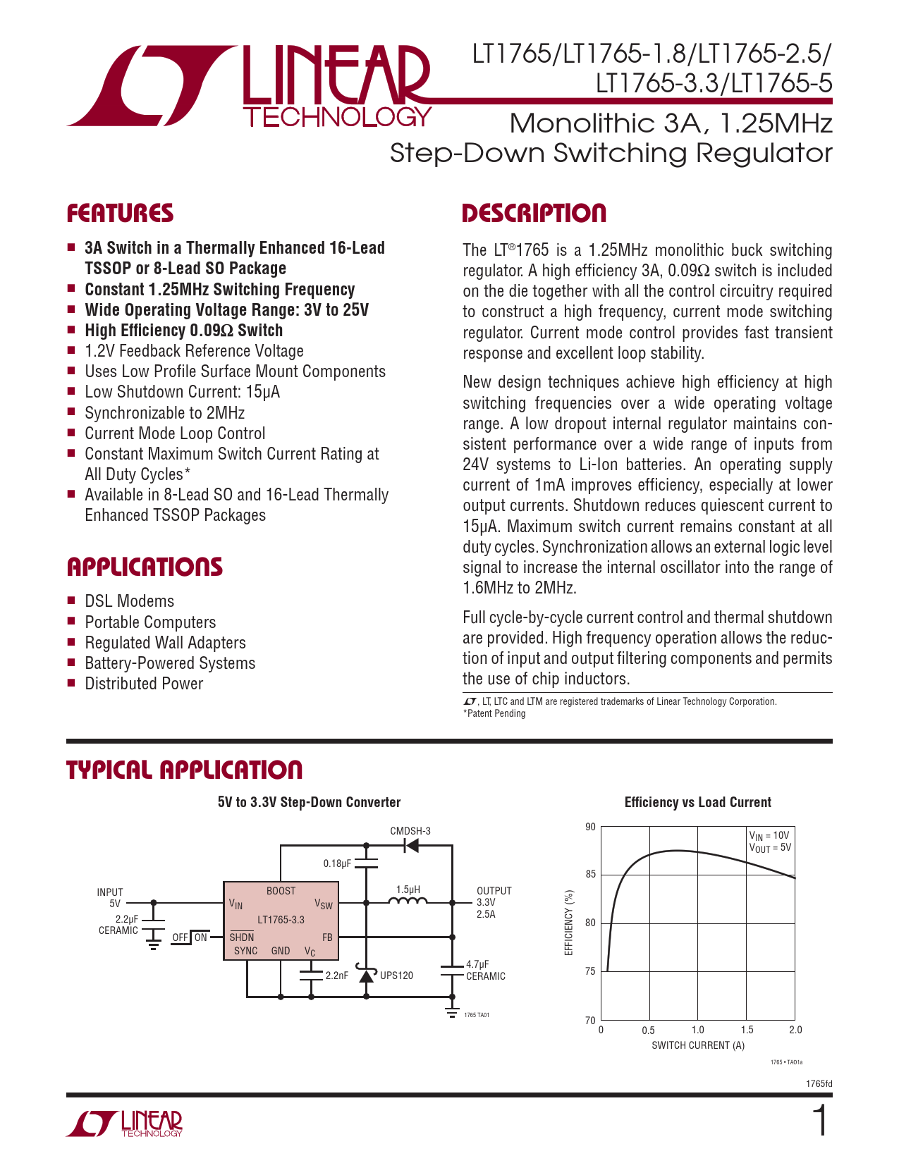 LT1765/LT1765-1.8/LT1765-2.5/ LT1765-3.3/LT1765-5 Monolithic 3A, 1.25MHz Step-Down Switching Regulator