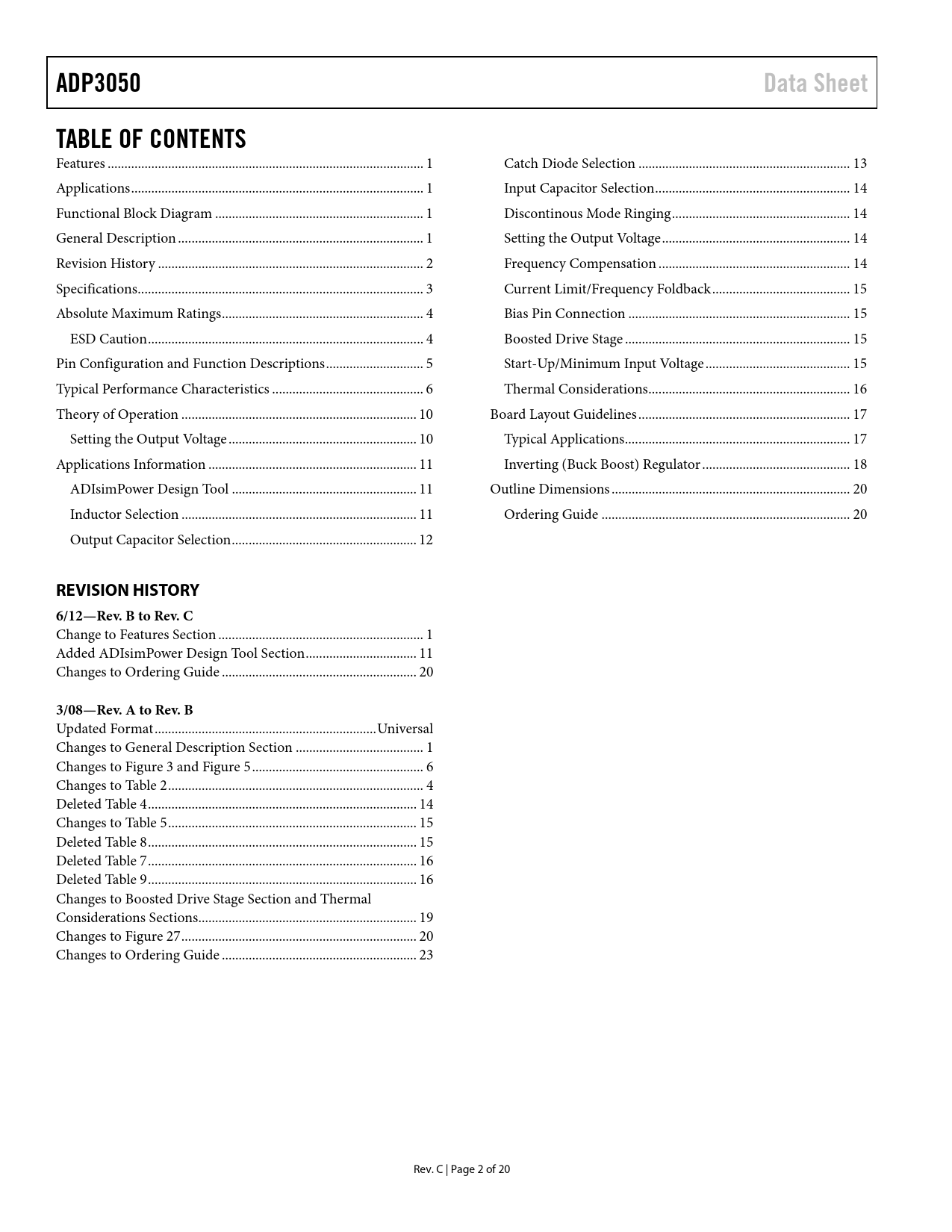 Pages / Page20 / 2 — ADP3050. Data Sheet. TABLE OF CONTENTS. REVISION HISTORY 6/12—Rev. B to …