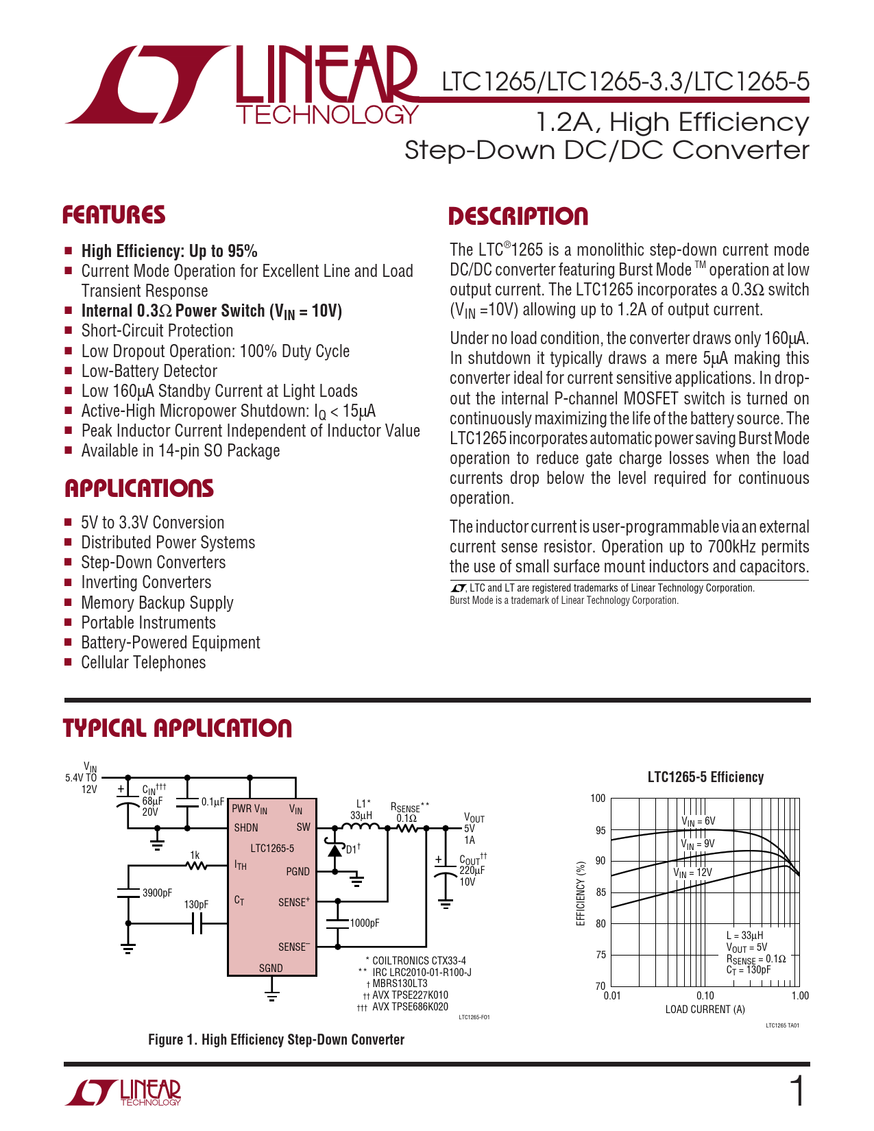 LTC1265/LTC1265-3.3/LTC1265-5 1.2A, High Efficiency Step-Down DC/DC Converter
