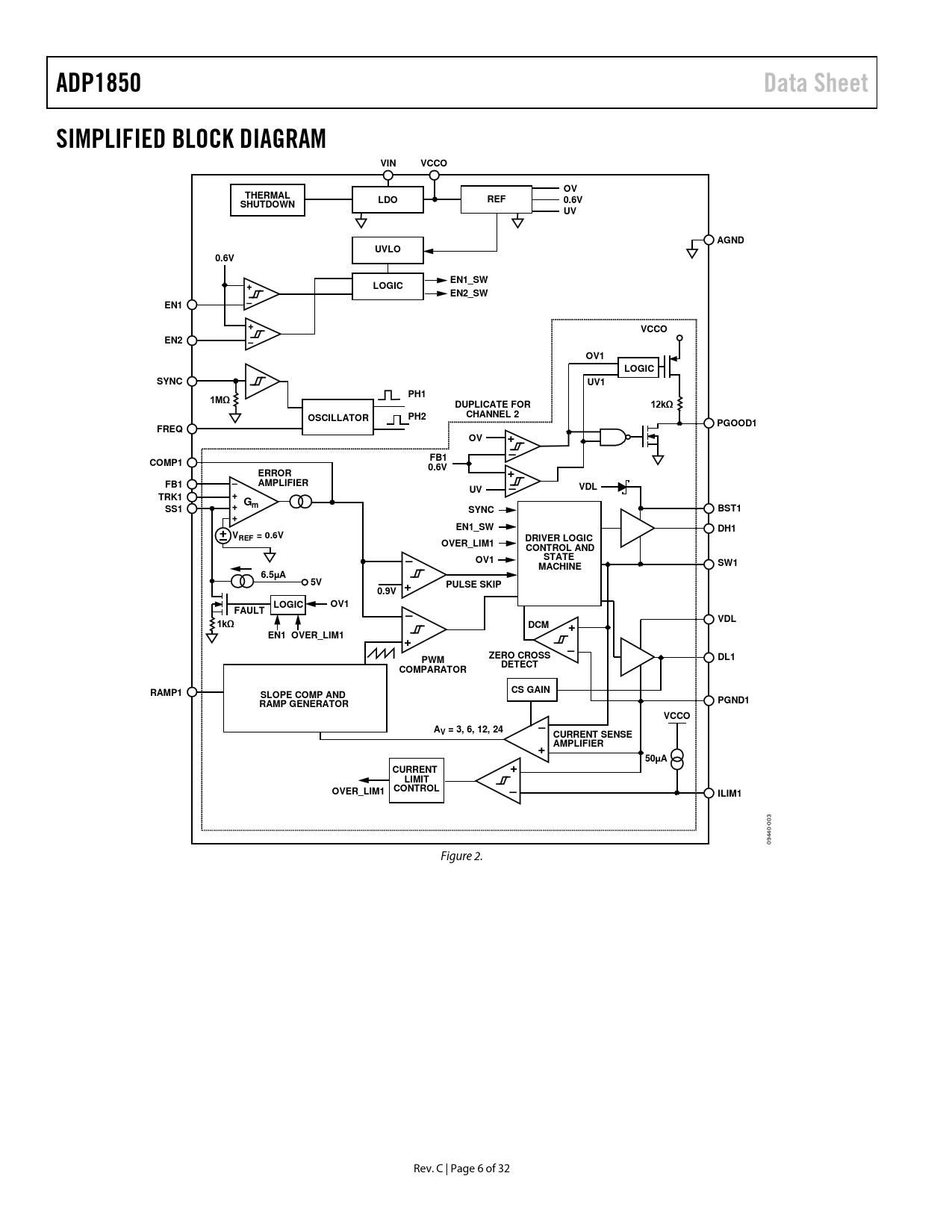 Pages / Page32 / 6 — ADP1850. Data Sheet. SIMPLIFIED BLOCK DIAGRAM. VIN. VCCO. THERMAL. LDO. …