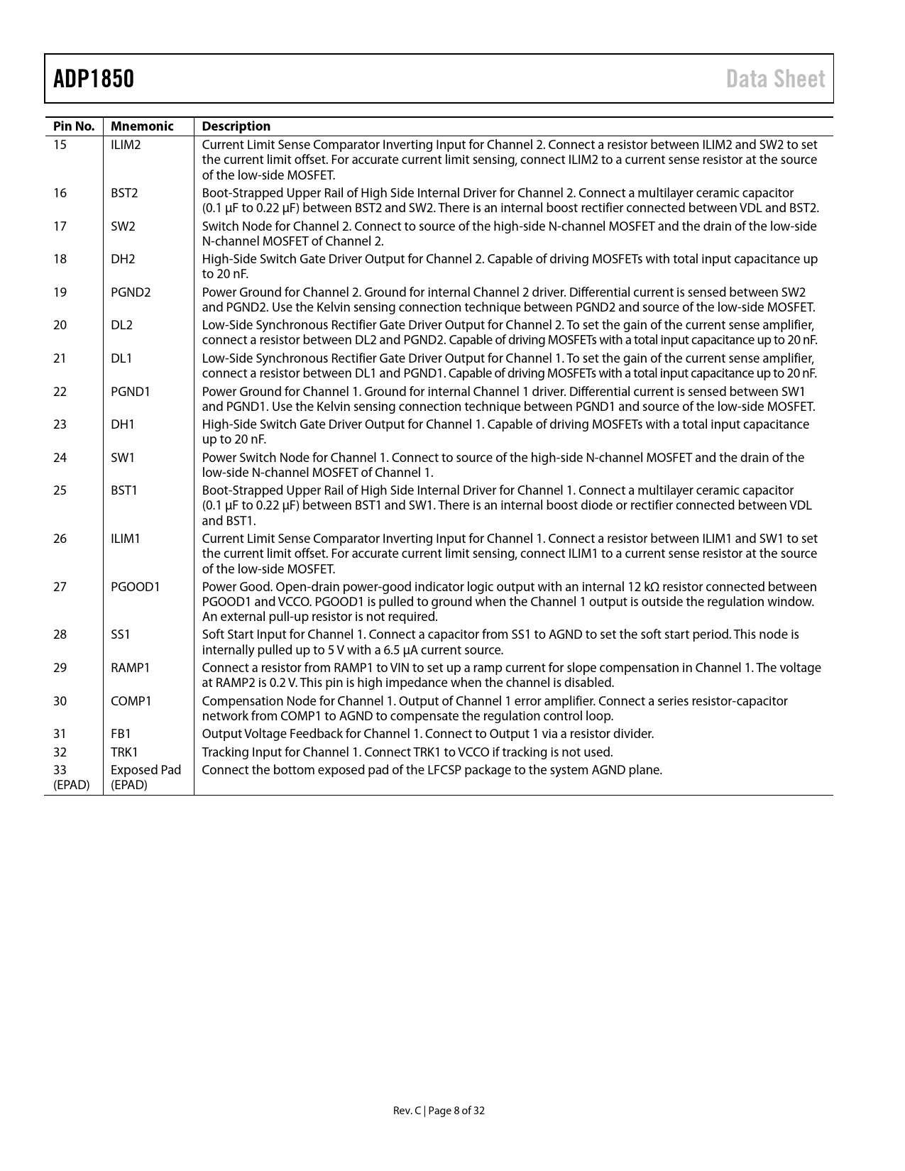 Pages / Page32 / 8 — ADP1850. Data Sheet. Pin No. Mnemonic. Description