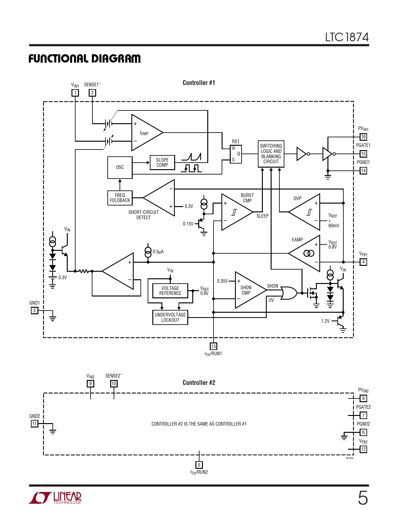 PVIN2 8 PGATE2 GND2 7 11 CONTROLLER #2 IS THE SAME AS CONTROLLER #1 PGND2 6 VFB2 12 1874FD 5 ITH/RUN2 5