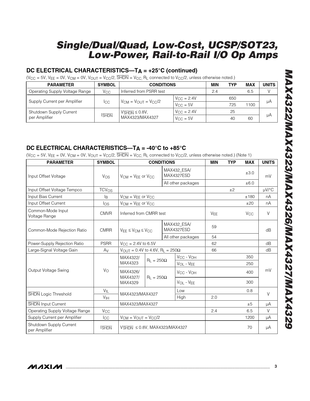 Datasheet MAX4322, MAX432, MAX4326, MAX4327, MAX4329 (Maxim) - 3