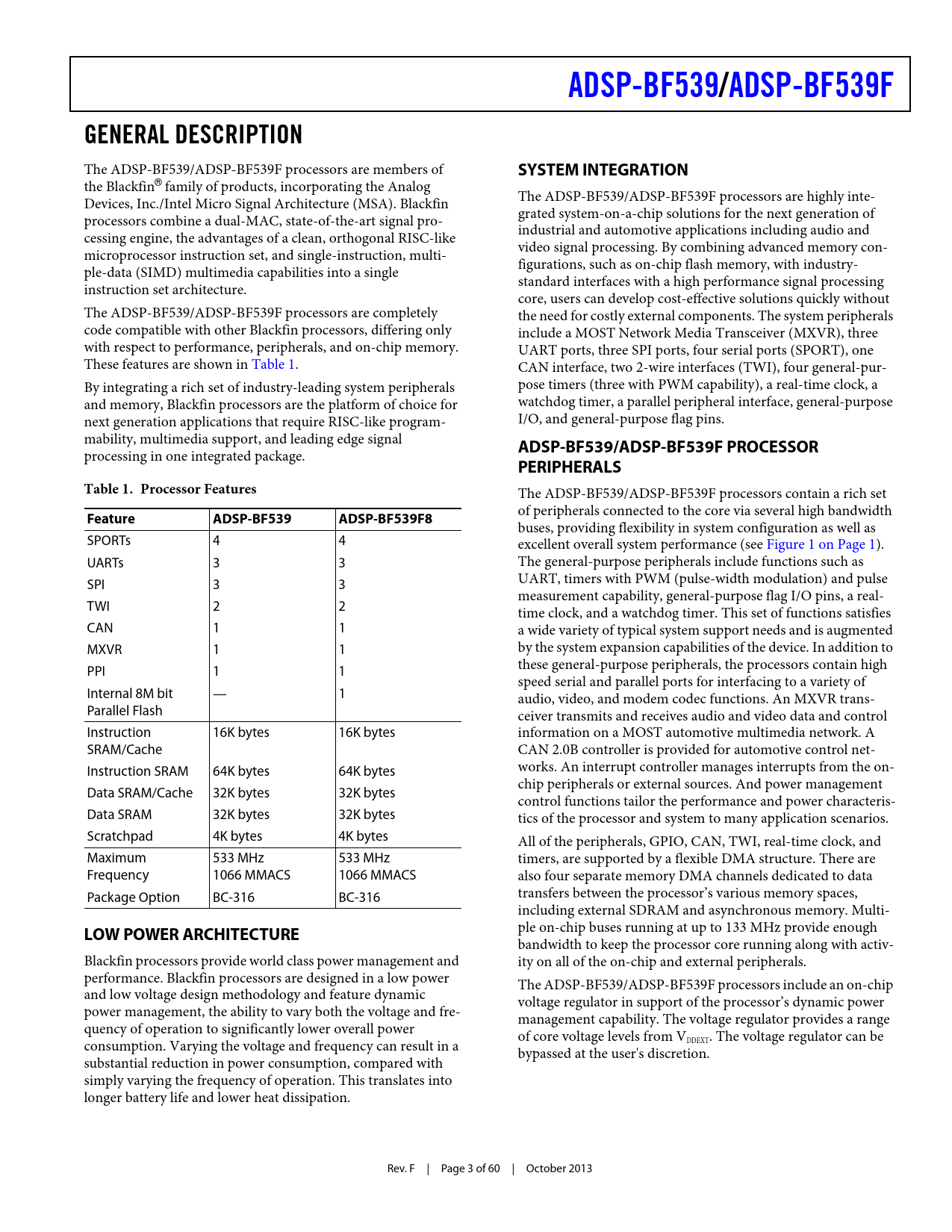 Pages / Page60 / 3 — ADSP-BF539/. ADSP-BF539F. GENERAL DESCRIPTION. SYSTEM INTEGRATION. …