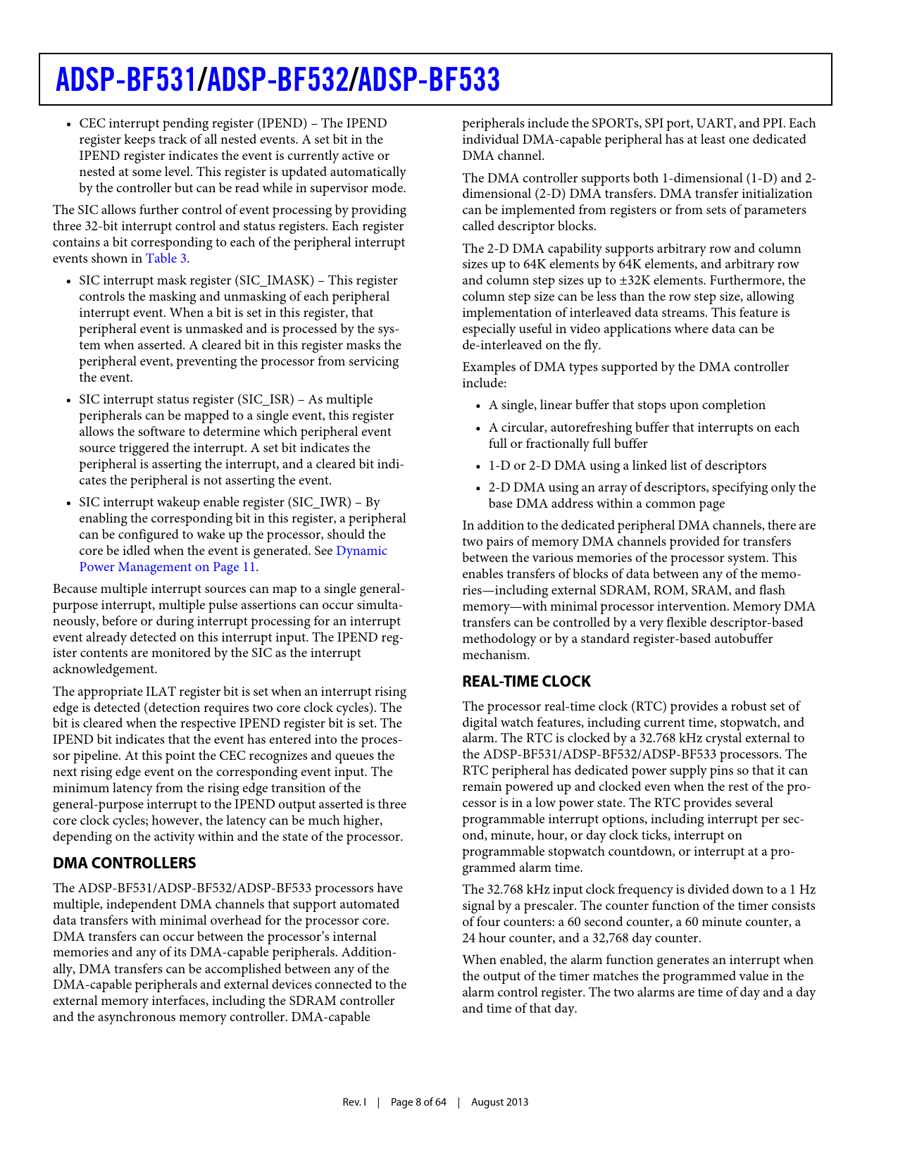 Pages / Page64 / 8 — ADSP-BF531/. ADSP-BF532. /ADSP-BF533. REAL-TIME CLOCK. DMA CONTROLLERS