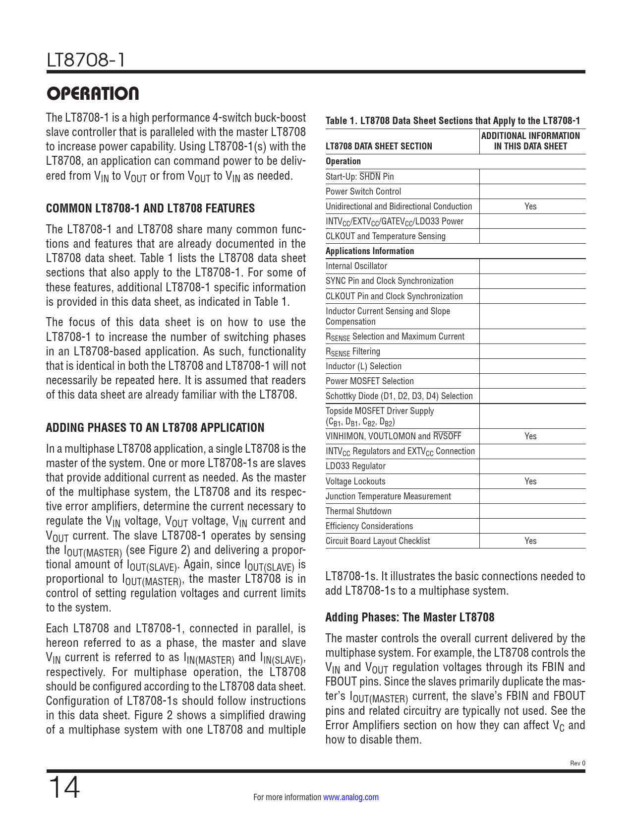 Pages / Page36 / 14 — OPERATION. Table 1. LT8708 Data Sheet Sections that Apply to the …