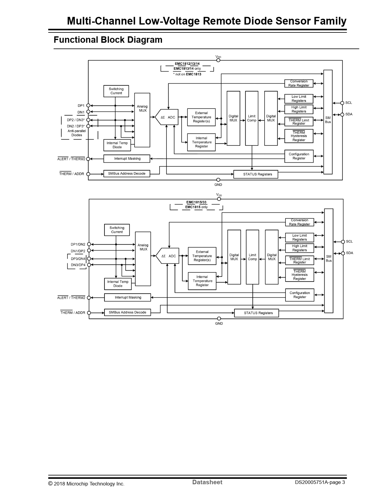 Datasheet EMC1812, EMC1813, EMC1814, EMC1815, EMC1833 (Microchip) - 3