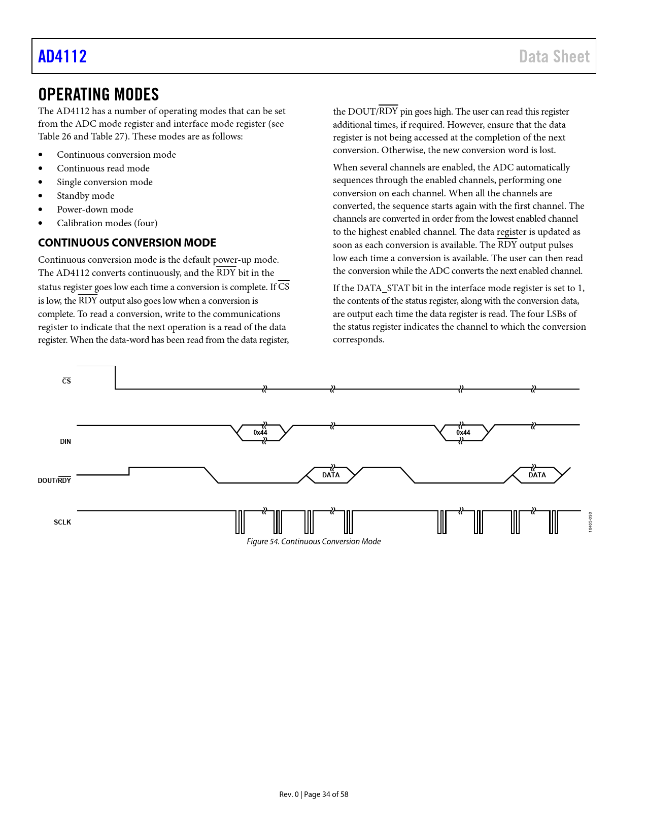 Pages / Page58 / 34 — AD4112. Data Sheet. OPERATING MODES. CONTINUOUS CONVERSION MODE. 0x44. …