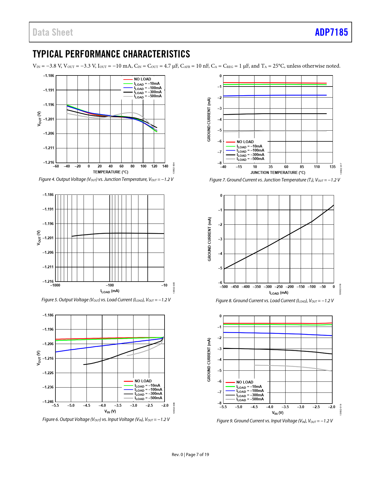 Data Sheet. ADP7185. TYPICAL PERFORMANCE CHARACTERISTICS. –1.186. NO LOAD ILOAD = –10mA. –1.191. LOAD = –100mA. ILOAD = –300mA