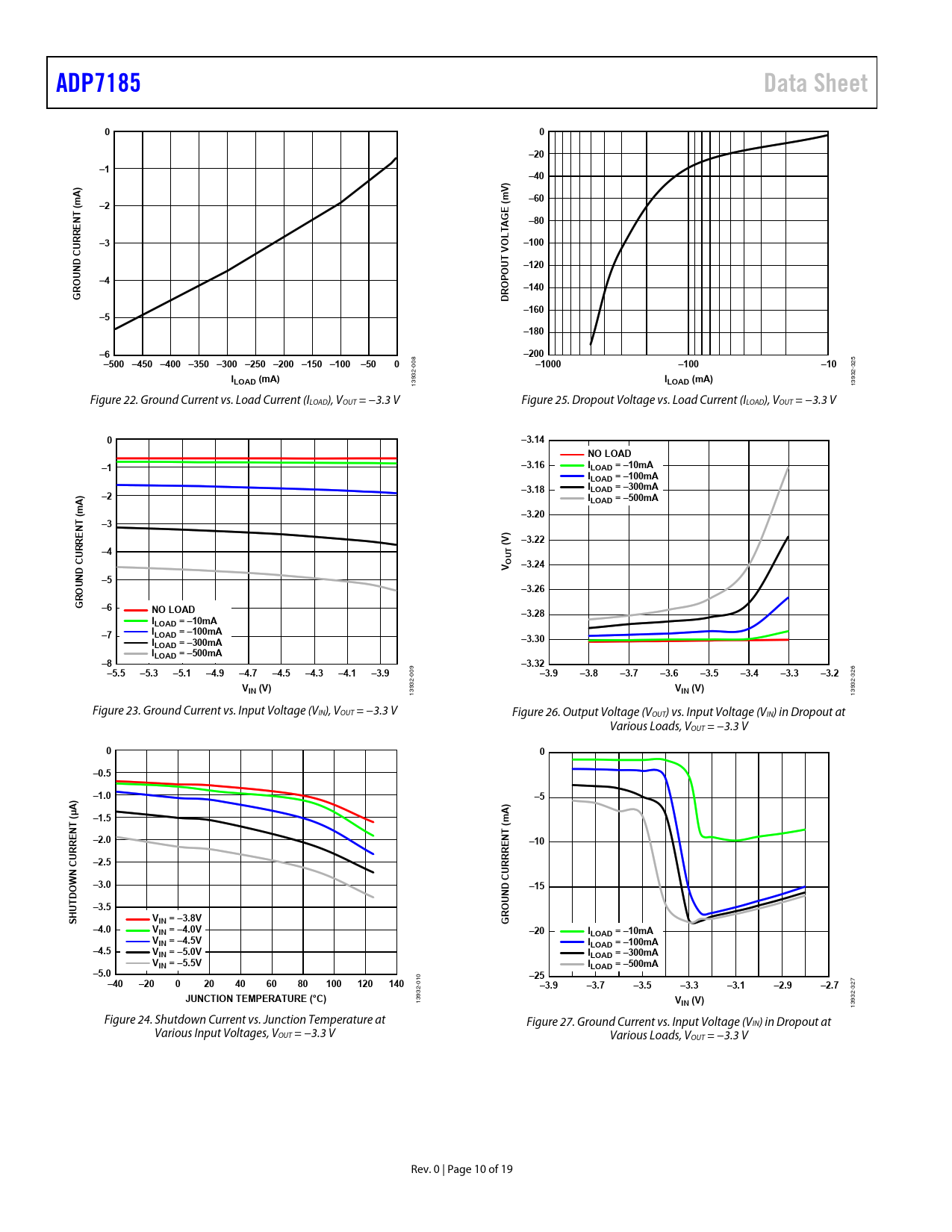 393 1 1 Figure 22. Ground Current vs. Load Current (ILOAD), VOUT = −3.3 V Figure 25. Dropout Voltage vs. Load Current (ILOAD), VOUT = −3.3 V