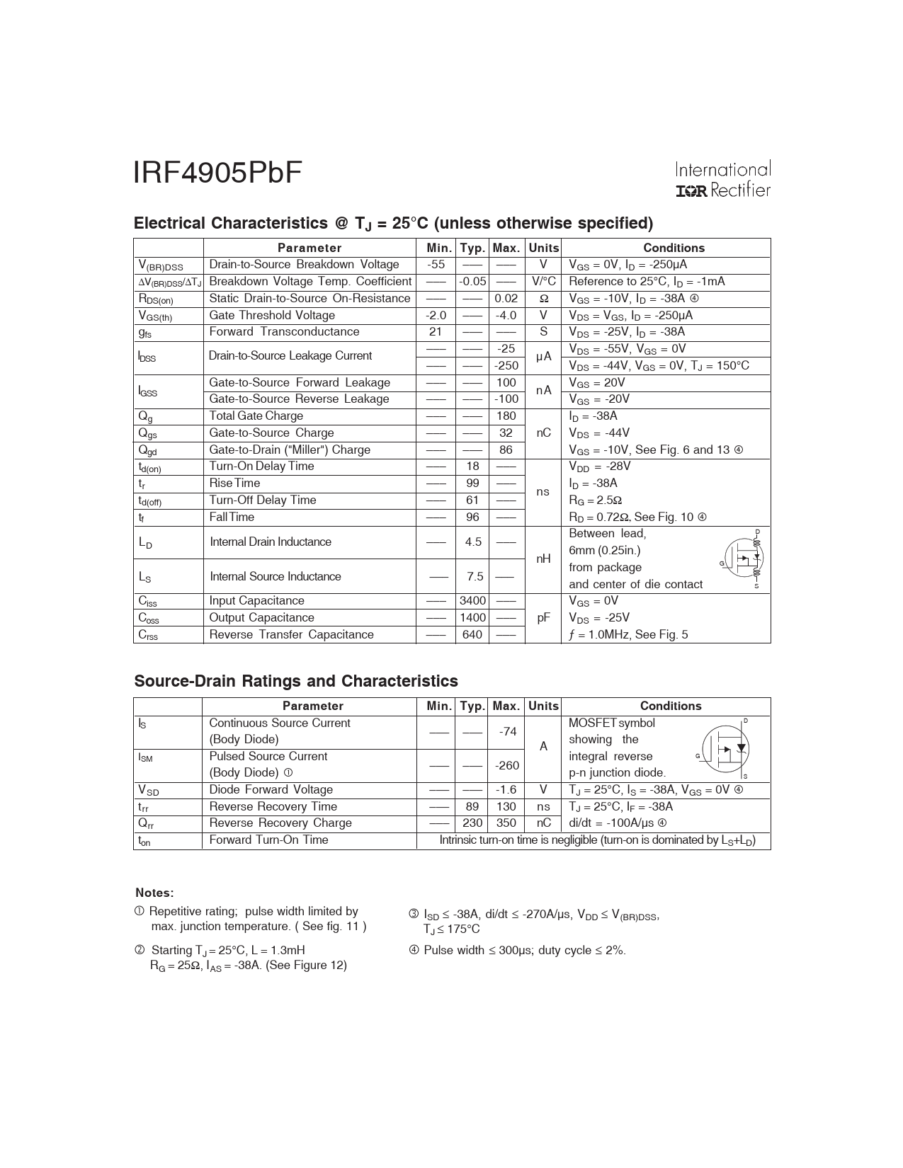 Datasheet IRF4905PbF (International Rectifier) - 2