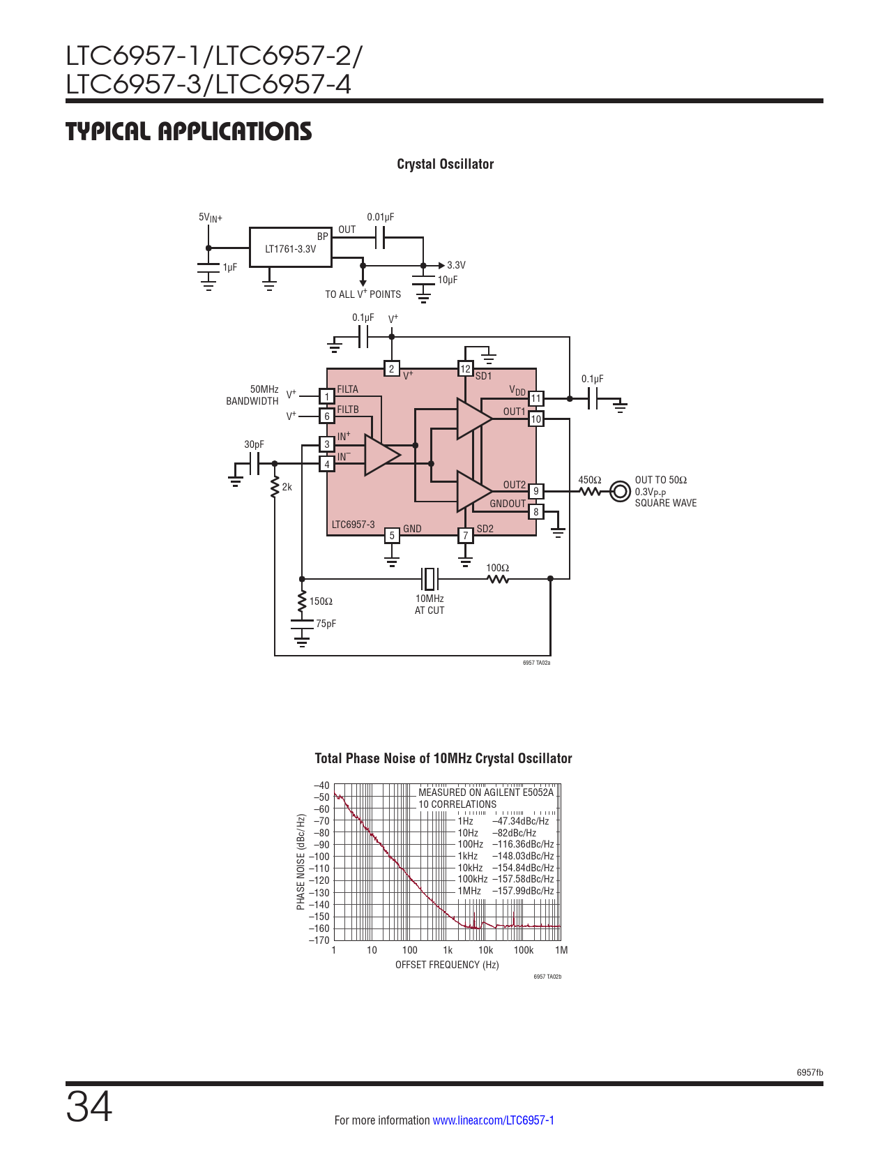 | Pages / Page | 38 / 34 — TYPICAL APPLICATIONS. Crystal Oscillator. Total Phase Noise of 10MHz … |
