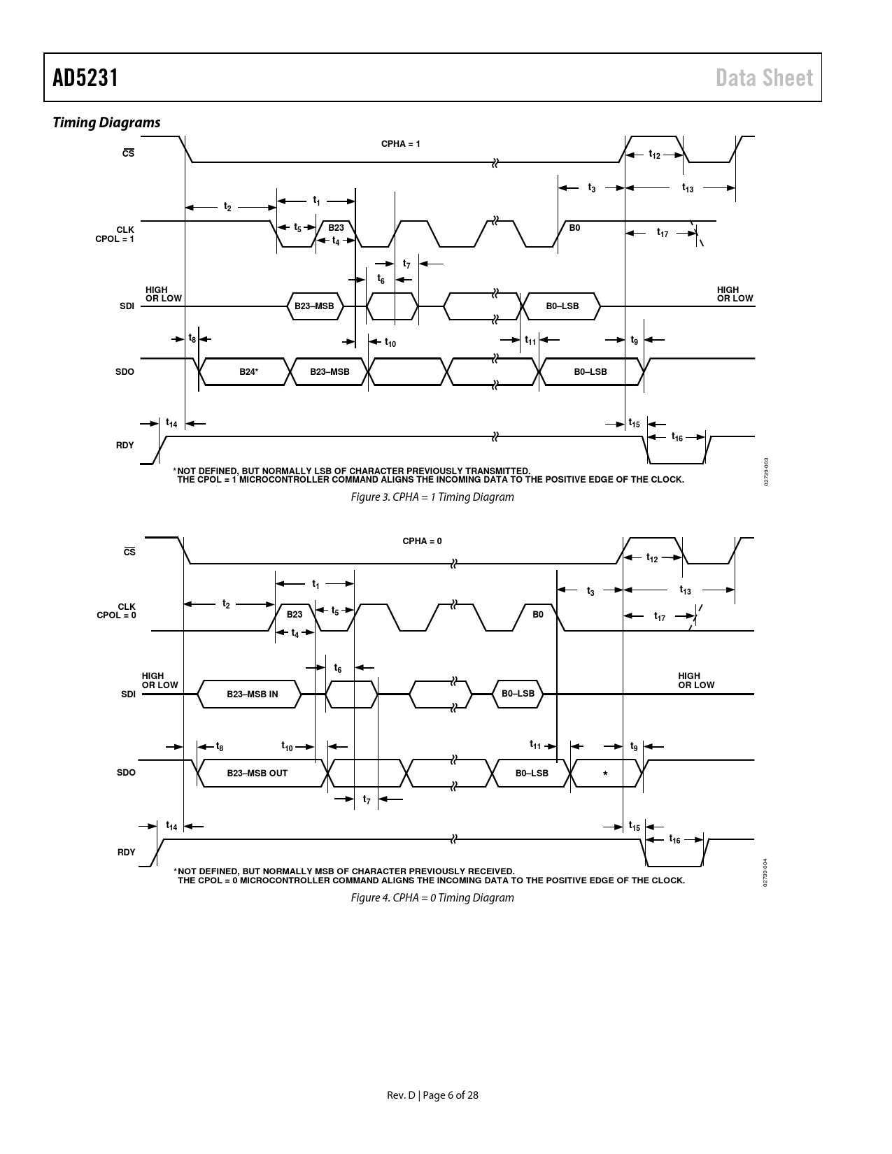 Pages / Page28 / 6 — AD5231. Data Sheet. Timing Diagrams. CPHA = 1. t12. t13. CLK. B23. t17. …