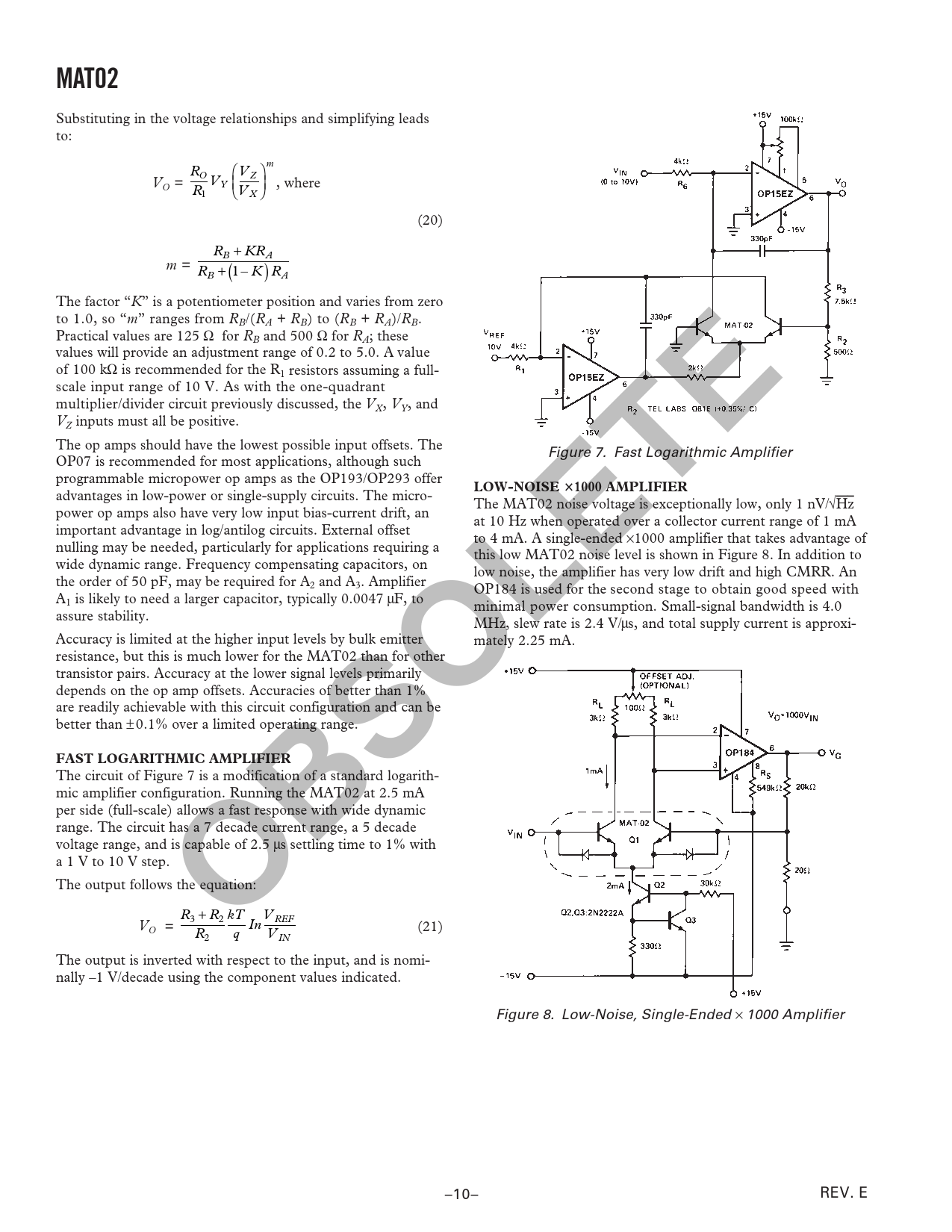 MAT02. LOW-NOISE. 1000 AMPLIFIER. FAST LOGARITHMIC AMPLIFIER. OBSOLETE