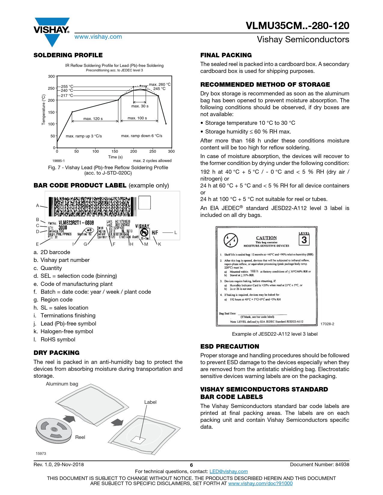 VLMU35CM..-280-120. SOLDERING PROFILE. FINAL PACKING. RECOMMENDED METHOD OF STORAGE. BAR CODE PRODUCT LABEL. 168 h. ESD PRECAUTION