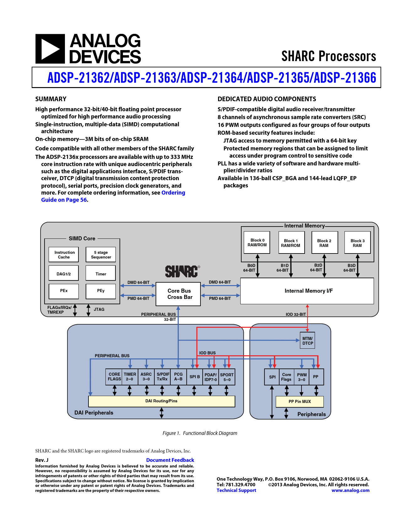 Figure 1. Functional Block Diagram SHARC and the SHARC logo are registered trademarks of Analog Devices, Inc.