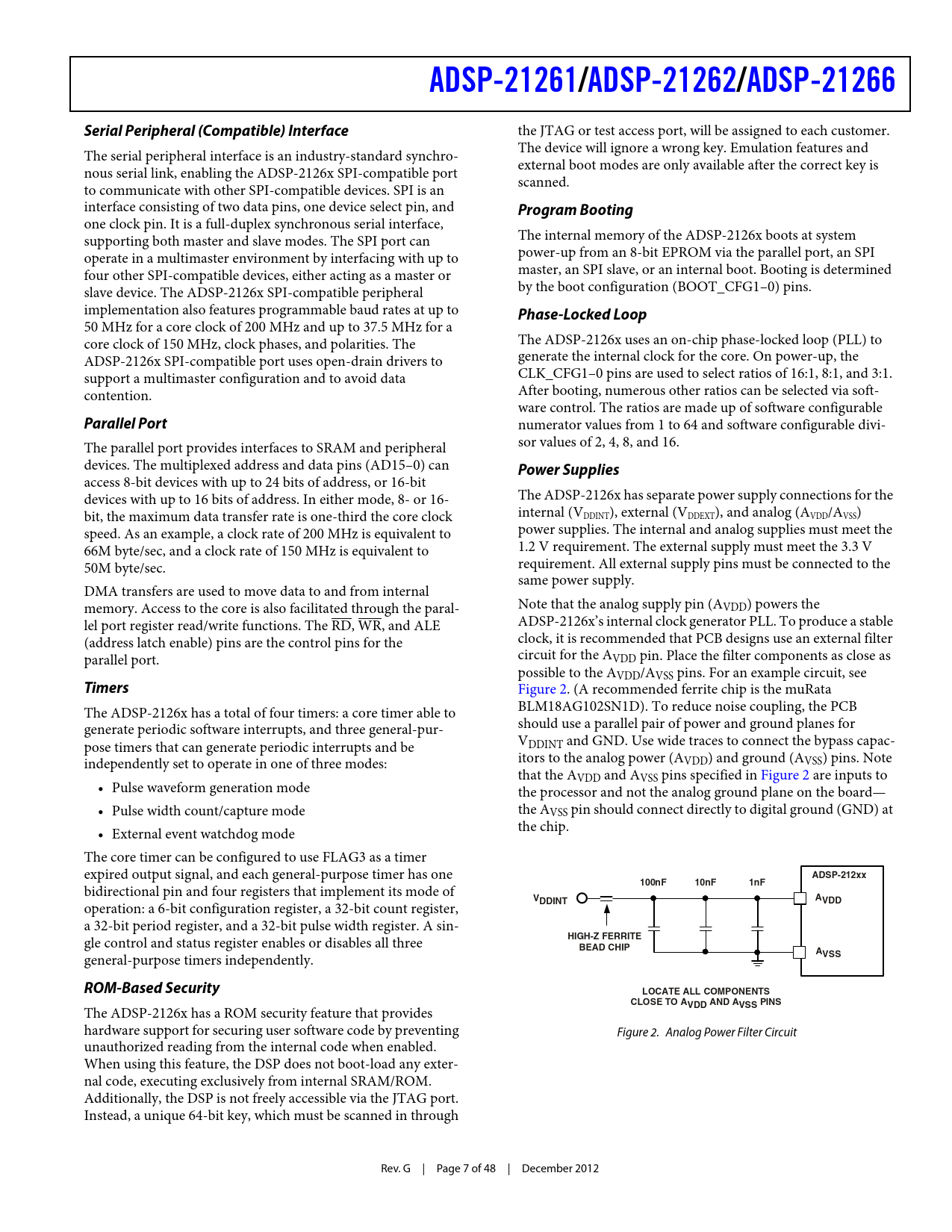 ADSP-21261. /ADSP-21262. /ADSP-21266. Serial Peripheral (Compatible) Interface. Program Booting. Phase-Locked Loop. Parallel Port