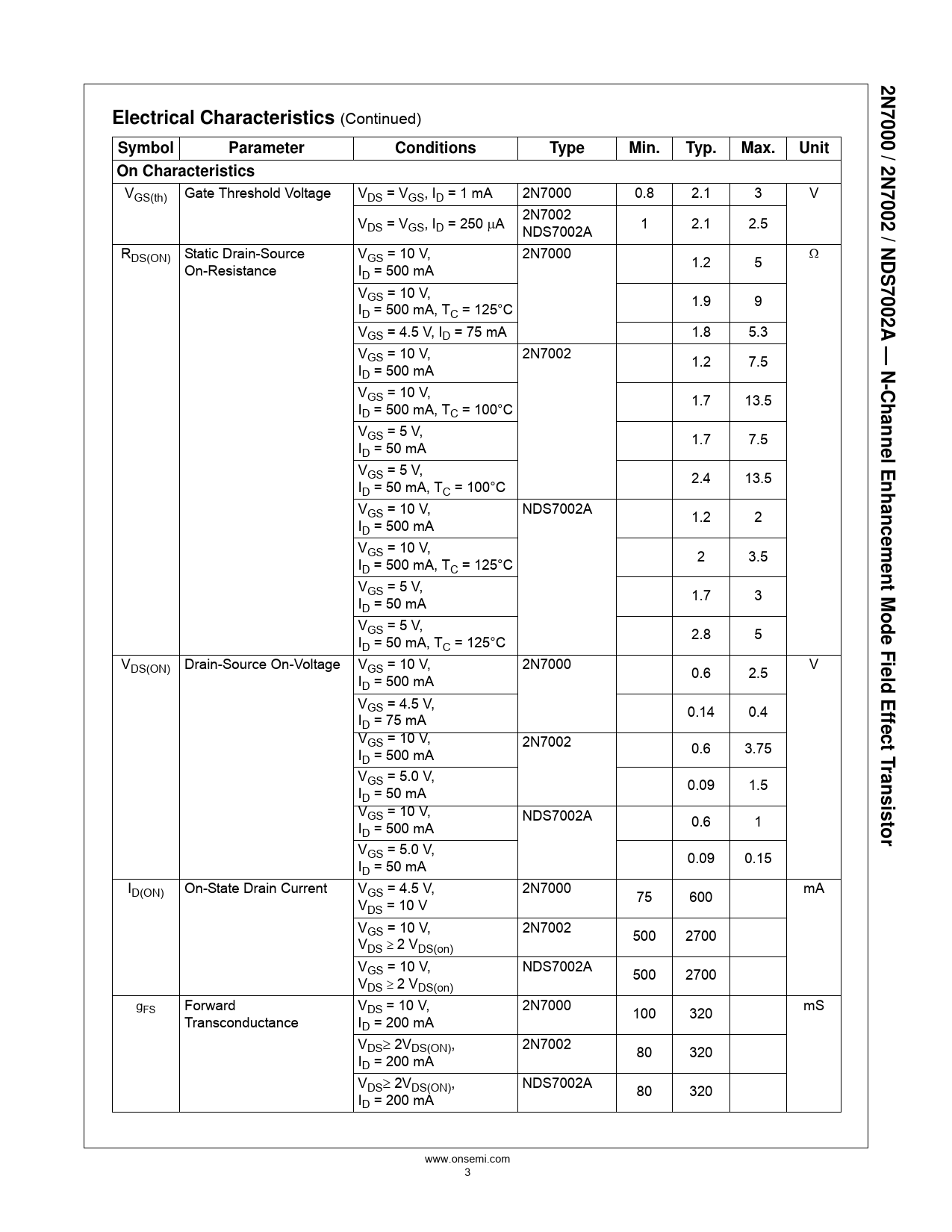 Datasheet 2N7000, 2N7002, NDS7002A (ON Semiconductor) - 3