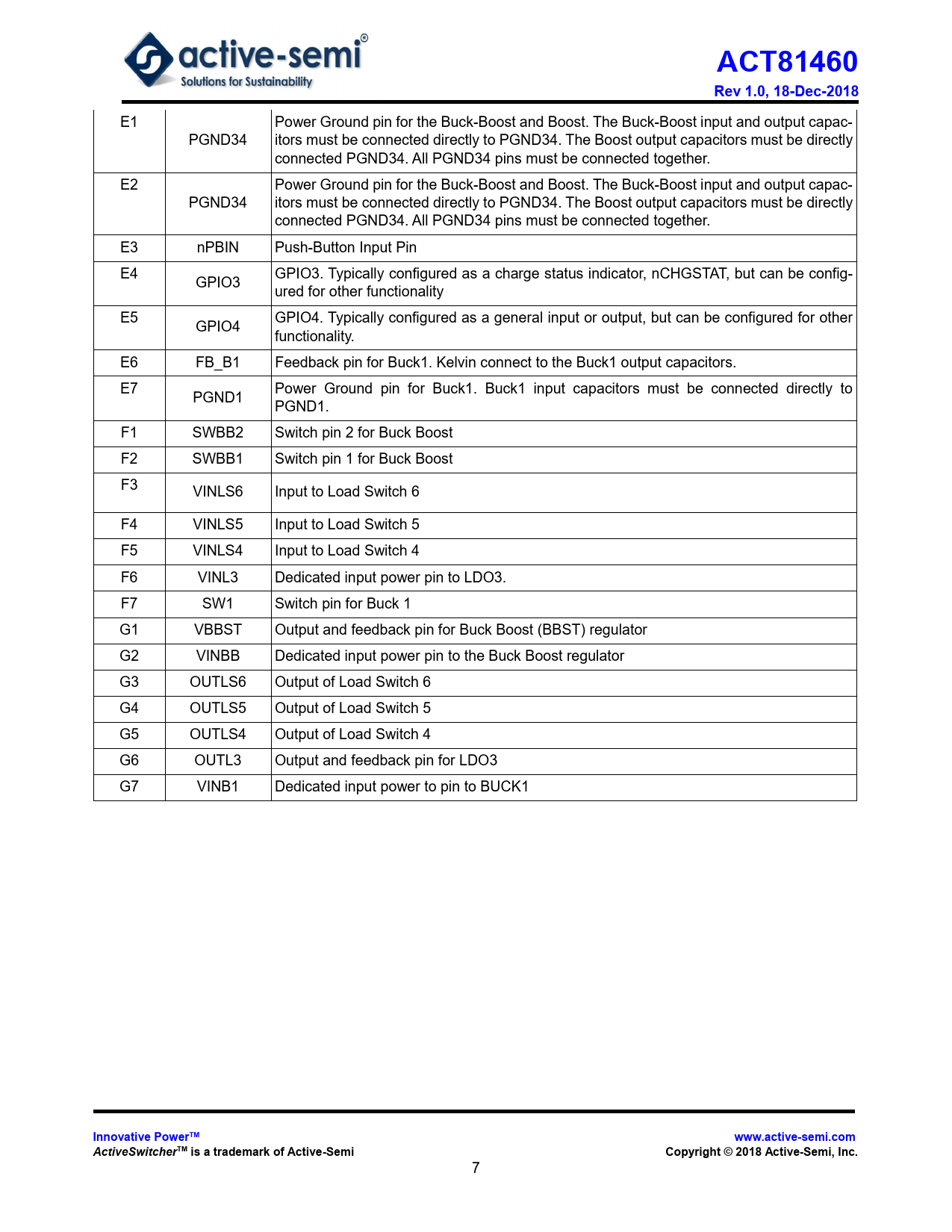 ACT81460. Rev 1.0, 18-Dec-2018. Innovative PowerTM. www.active-semi.com. ActiveSwitcher. TM is a trademark of Active-Semi