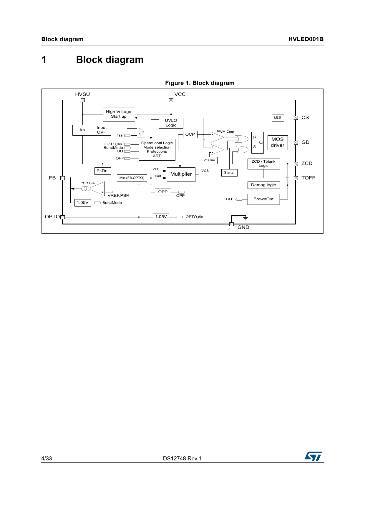 | Pages / Page | 33 / 4 — Block diagram. HVLED001B. Figure 1. Block diagram |