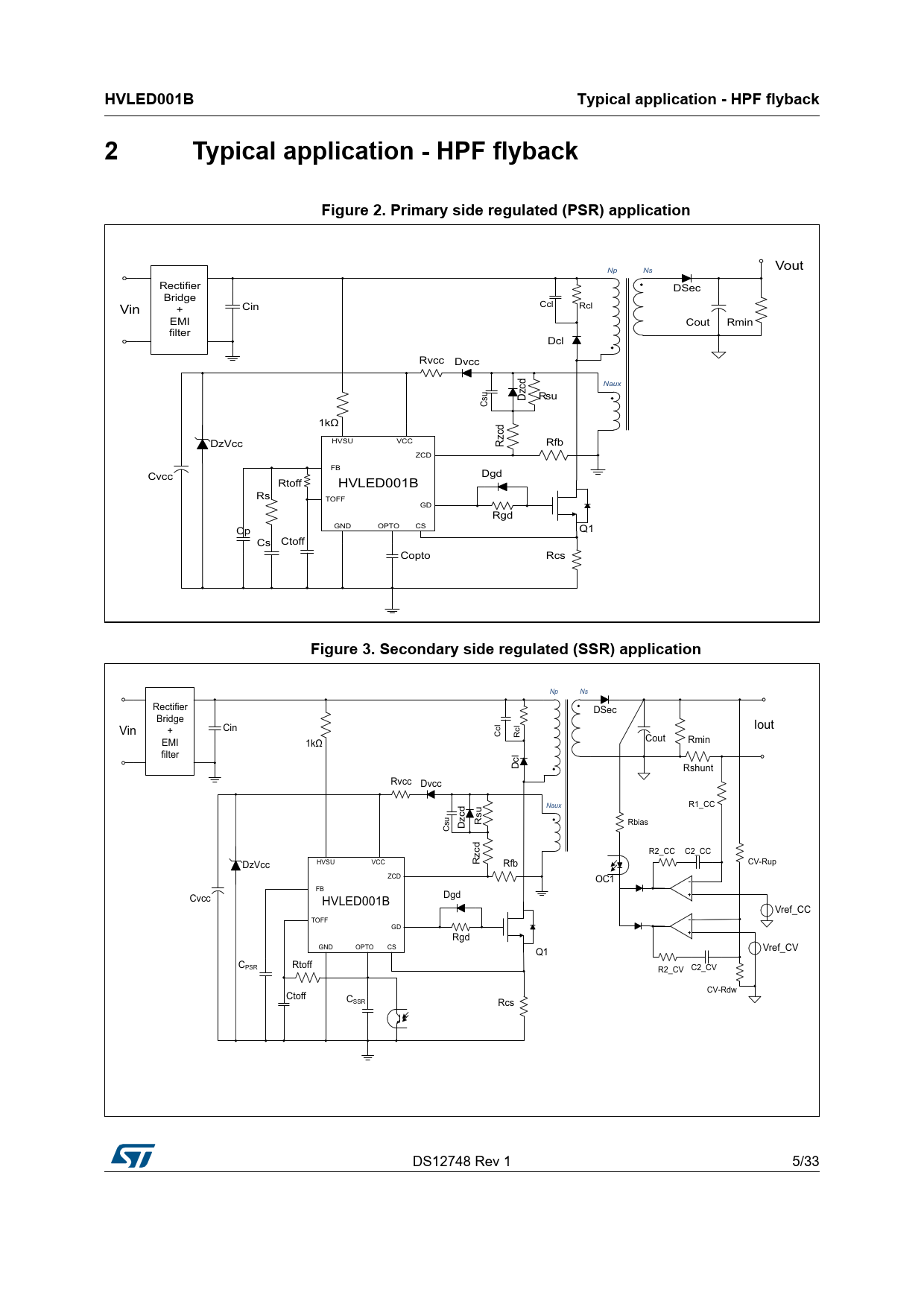 | Pages / Page | 33 / 5 — HVLED001B. Typical application - HPF flyback. Figure 2. Primary side … |
