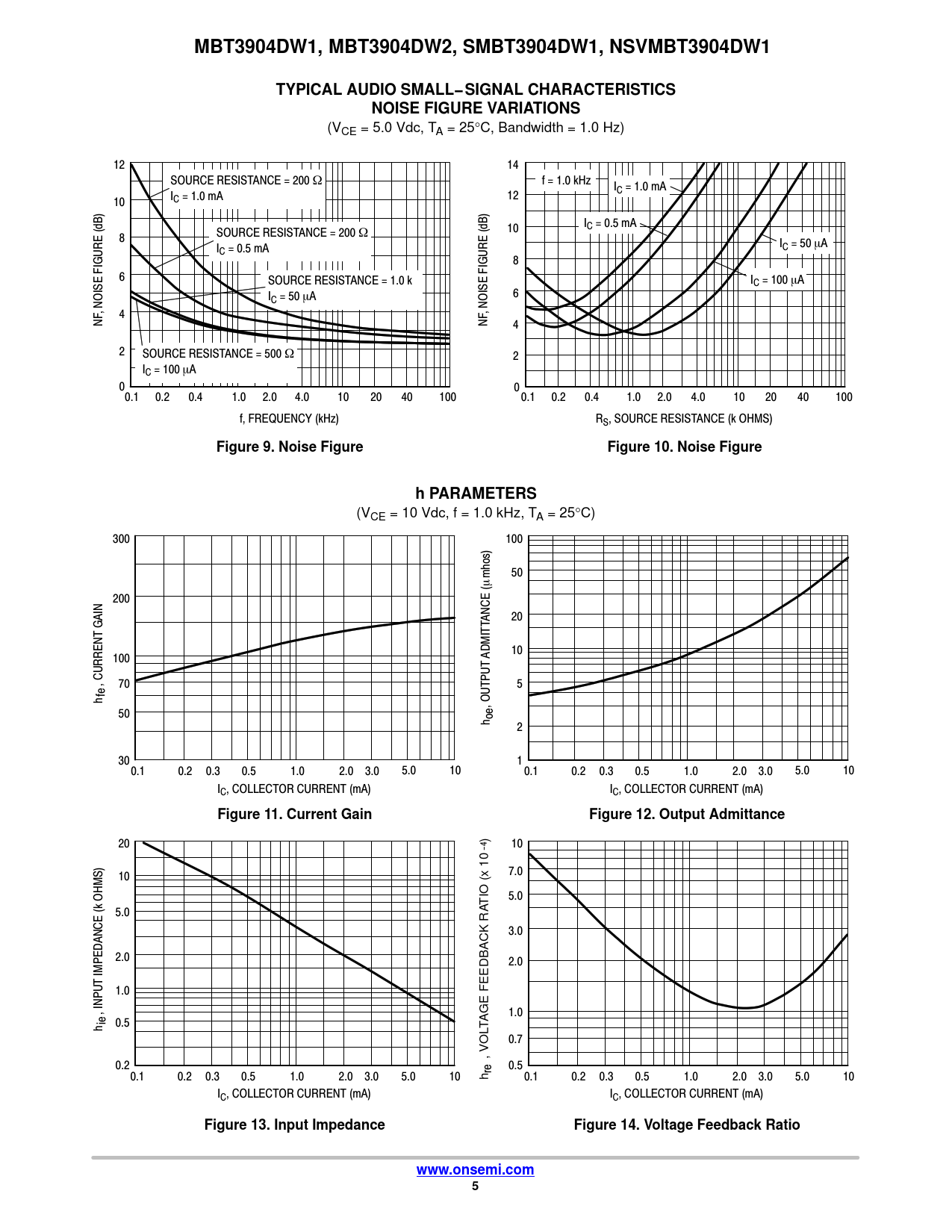 MBT3904DW1, MBT3904DW2, SMBT3904DW1, NSVMBT3904DW1. TYPICAL AUDIO SMALL− SIGNAL CHARACTERISTICS. NOISE FIGURE VARIATIONS