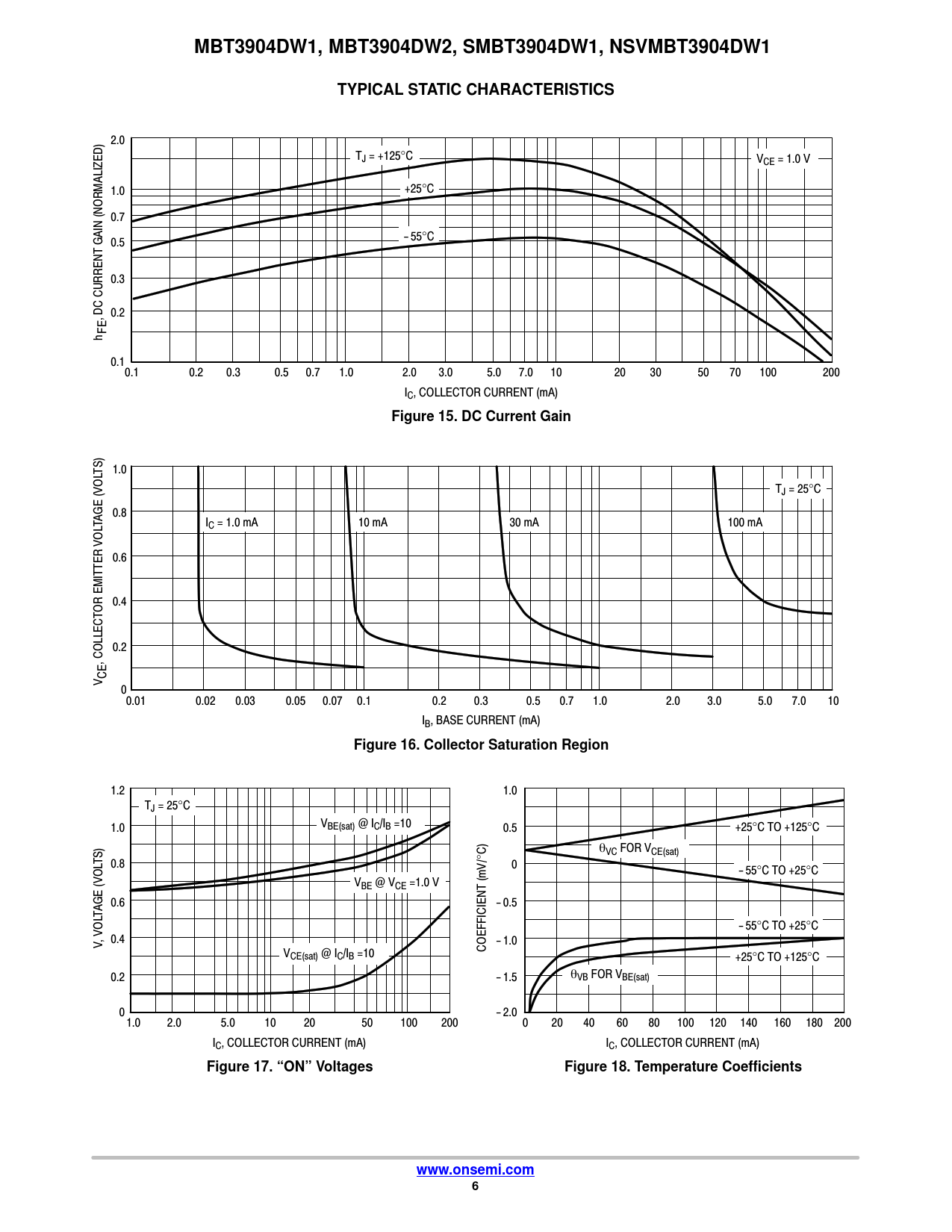 MBT3904DW1, MBT3904DW2, SMBT3904DW1, NSVMBT3904DW1 TYPICAL STATIC CHARACTERISTICS