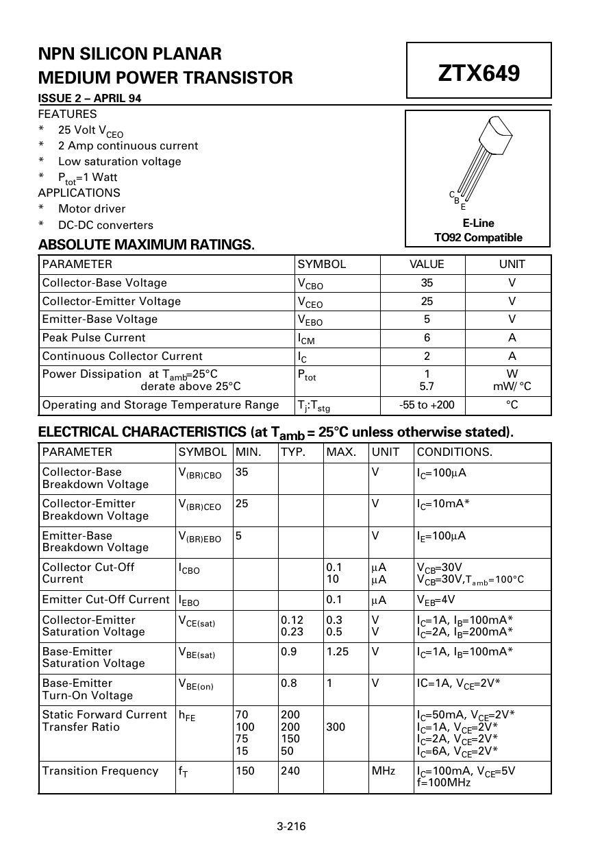 Datasheet ZTX649 (Diodes)
