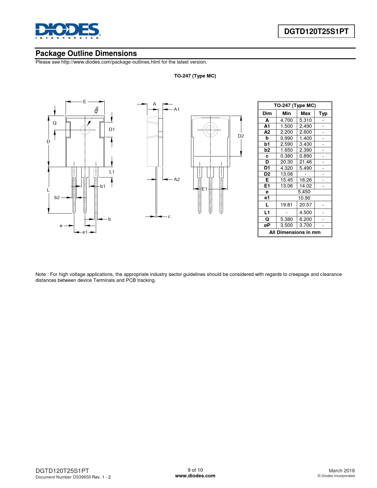 DGTD120T25S1PT. Package Outline Dimensions. TO-247 (Type MC). Dim. Min. Max. Typ. All Dimensions in mm. www.diodes.com
