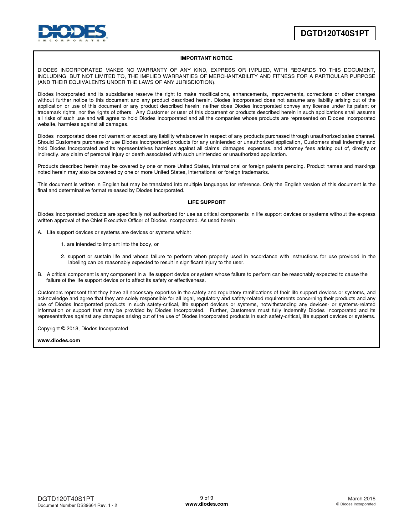 | Pages / Page | 9 / 9 — DGTD120T40S1PT. IMPORTANT NOTICE. LIFE SUPPORT. www.diodes.com |