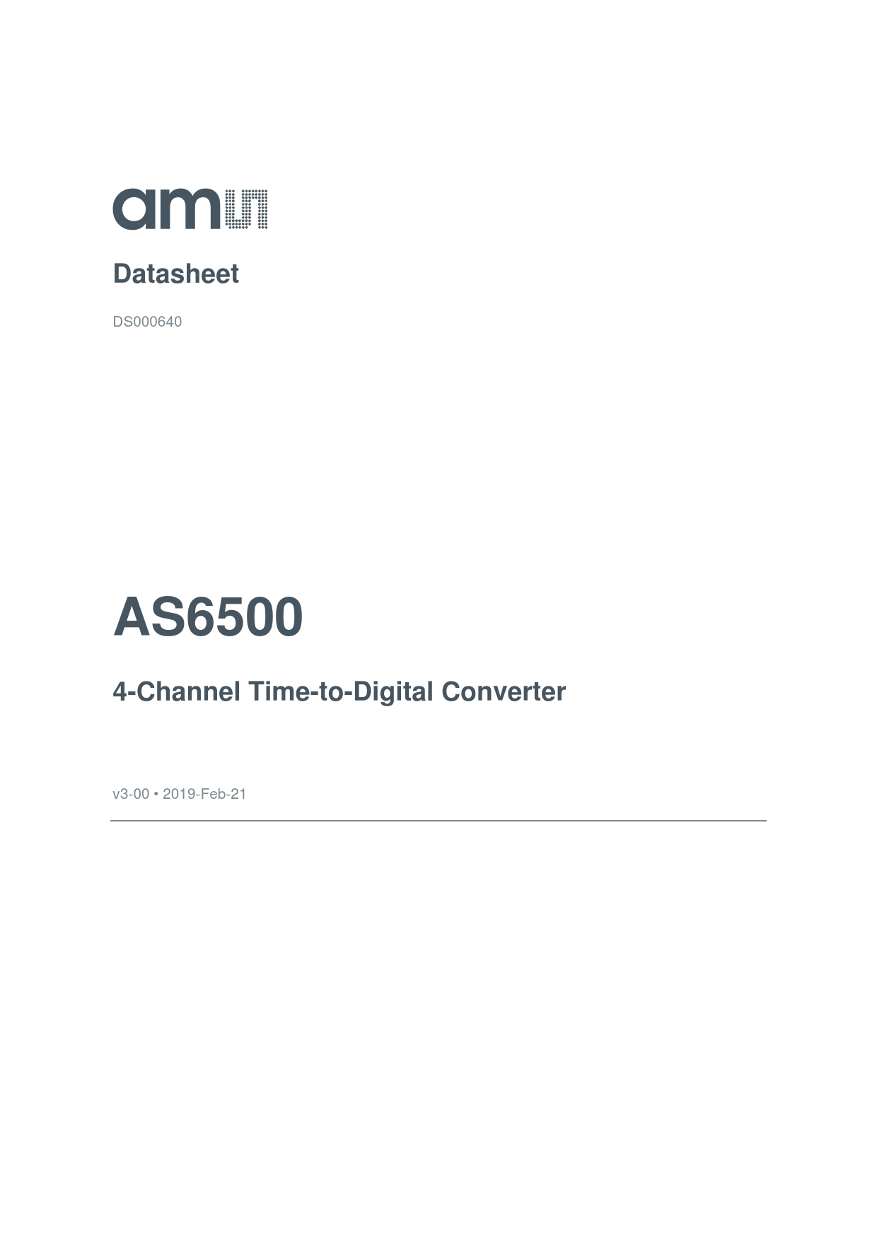| Pages / Page | 56 / 1 — Datasheet. AS6500. 4-Channel Time-to-Digital Converter |