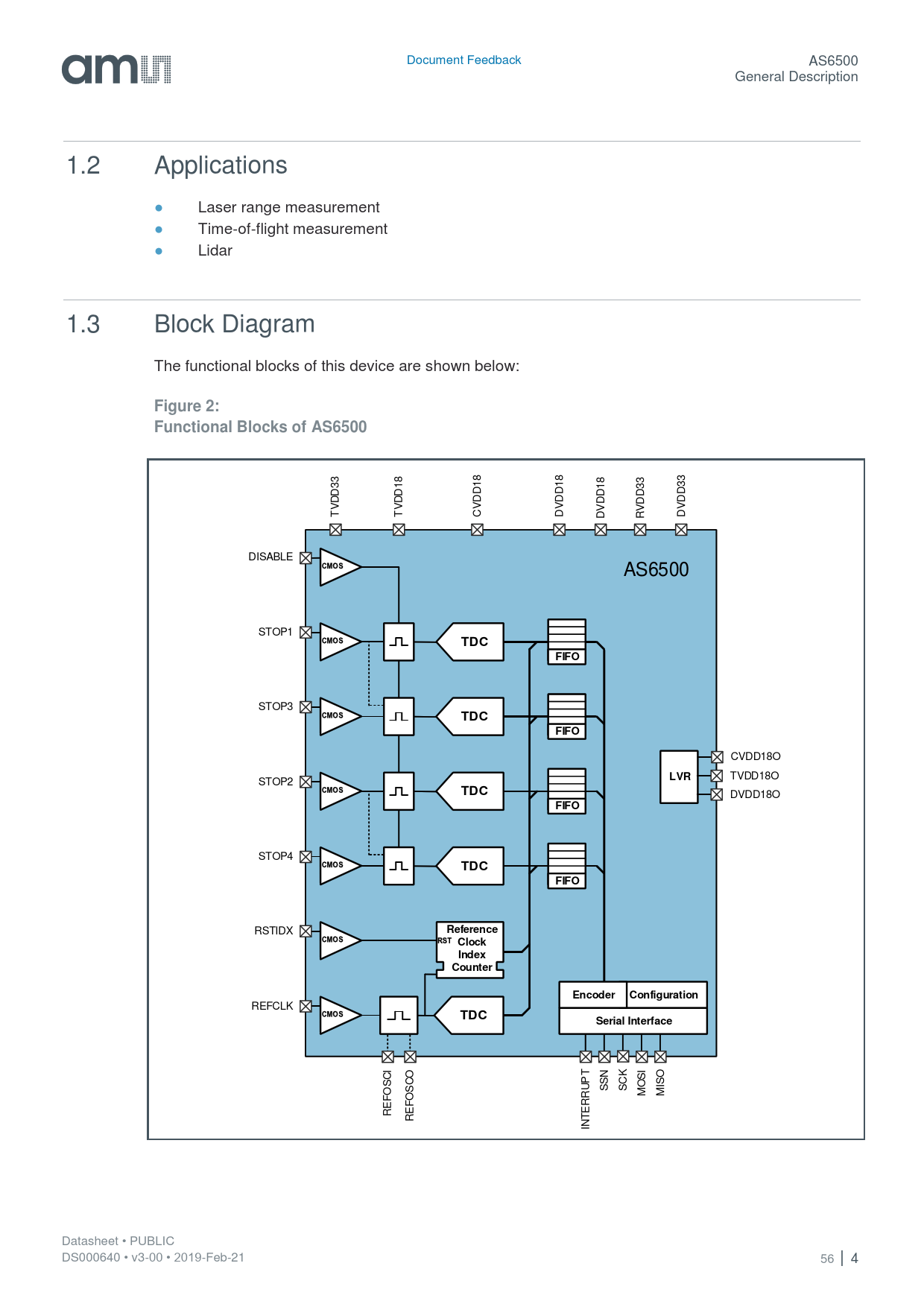 Pages / Page56 / 4 — Figure 2: Functional Blocks of AS6500. TDC. FIFO. LVR. Reference. Clock. …