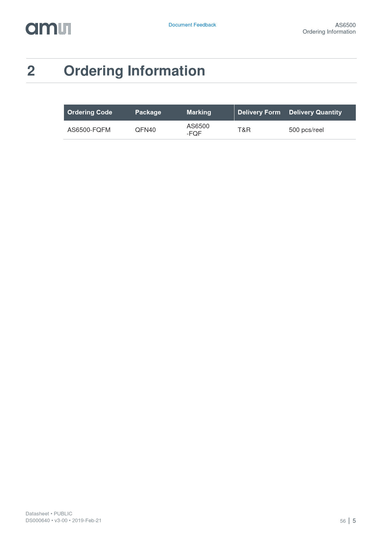Document Feedback AS6500 Ordering Information