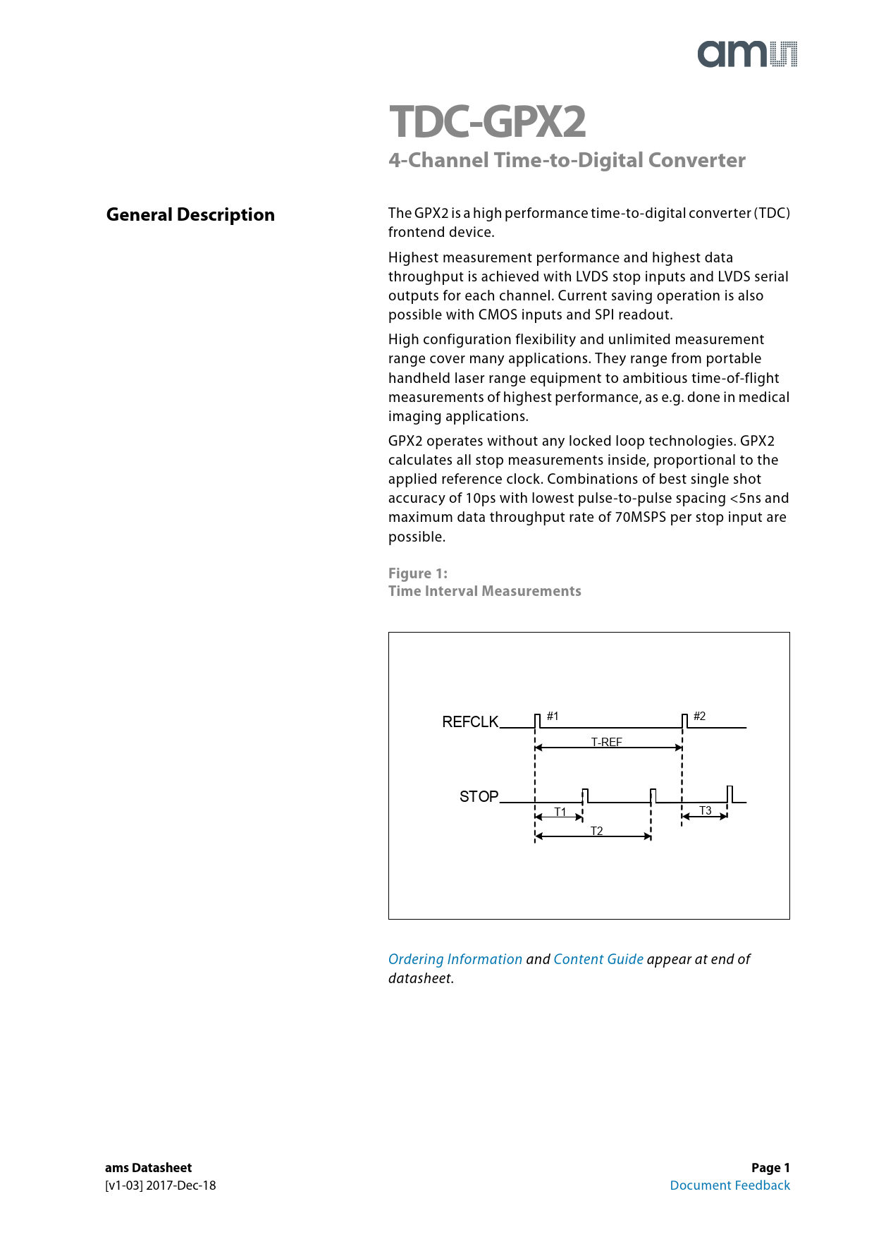 TDC-GPX2. 4-Channel Time-to-Digital Converter. General Description. Figure 1: Time Interval Measurements. ams Datasheet. Page 1