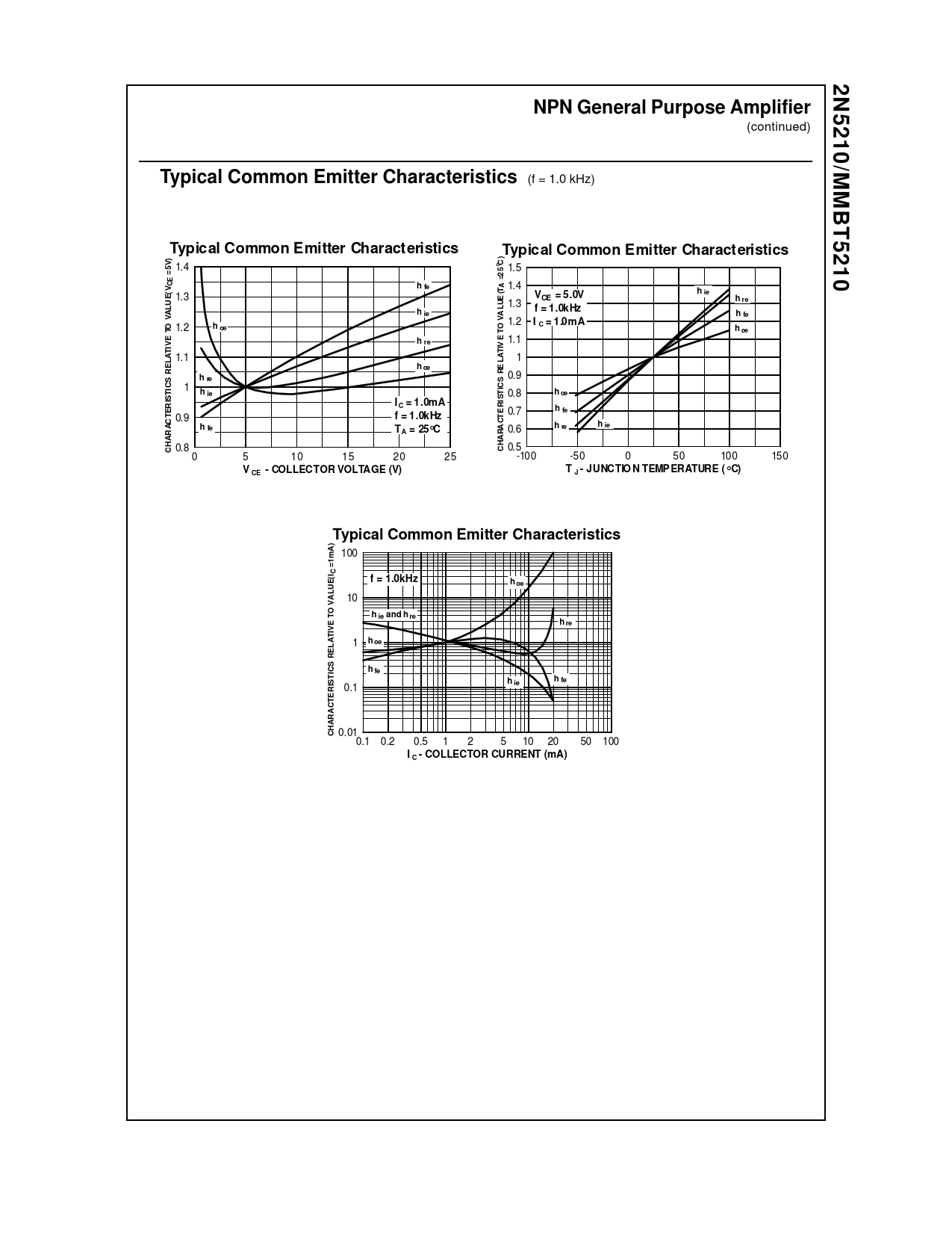 2N5210/MMBT5210. NPN General Purpose Amplifier. Typical Common Emitter Characteristics. h ie. V = 5.0V. f = 1.0kHz. h fe. I = 1.0mA