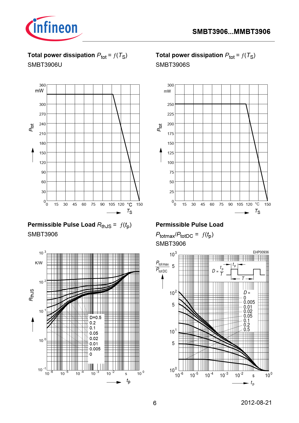 | Pages / Page | 12 / 6 — SMBT3906...MMBT3906. Total power dissipation. Permissible Pulse Load |