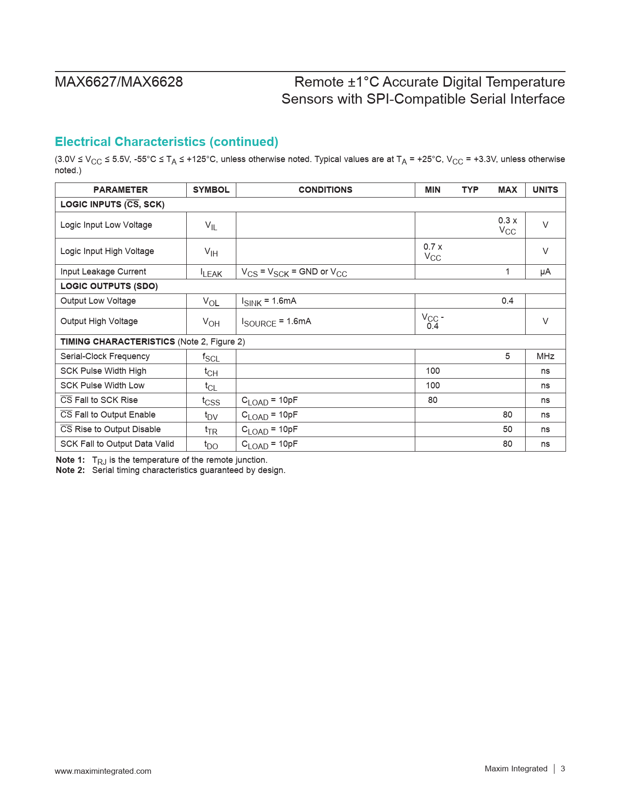 Serial timing characteristics guaranteed by design. www.maximintegrated.com Maxim Integrated │ 3