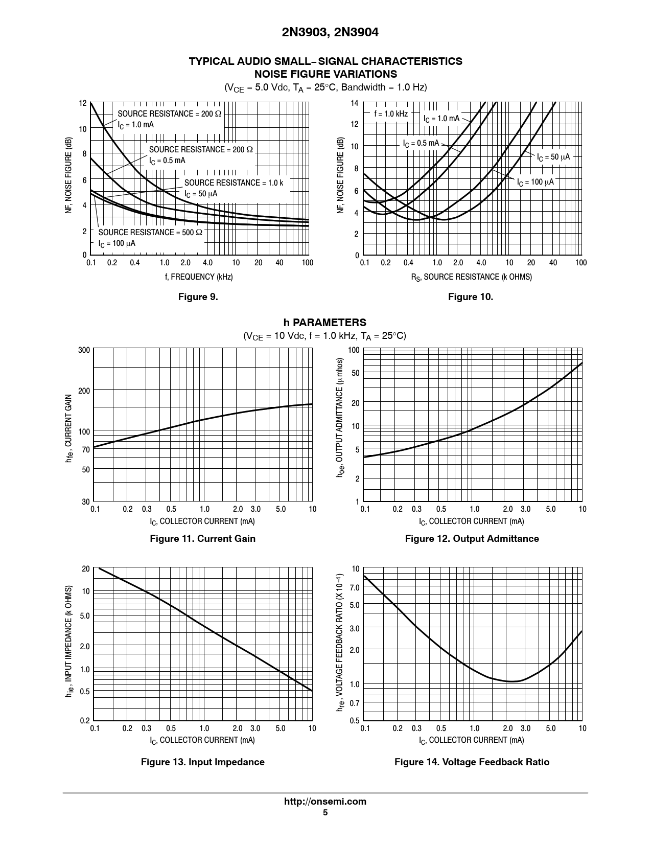 2N3903, 2N3904. TYPICAL AUDIO SMALL−SIGNAL CHARACTERISTICS. NOISE FIGURE VARIATIONS. Figure 9. Figure 10. h PARAMETERS