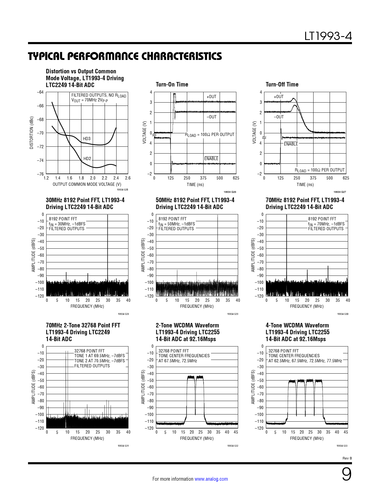 Distortion vs Output Common. Mode Voltage, LT1993-4 Driving. LTC2249 14-Bit ADC. Turn-On Time. Turn-Off Time