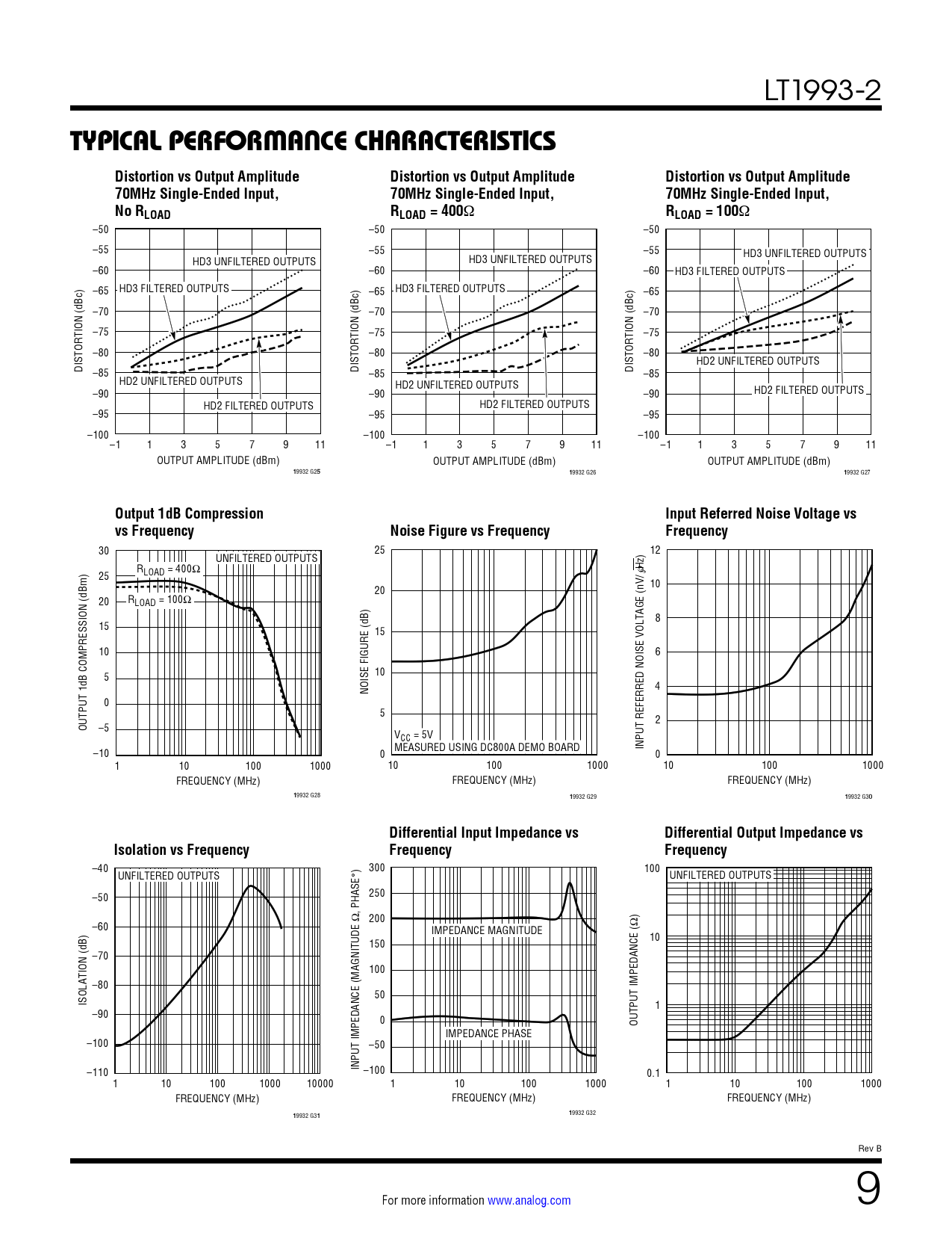 –40 100 UNFILTERED OUTPUTS °) 300 UNFILTERED OUTPUTS –50 250 , PHASE Ω 200 ) –60 Ω IMPEDANCE MAGNITUDE 10 150 –70 100 –80 50 ISOLATION (dB) 1 –90 0 OUTPUT IMPEDANCE ( IMPEDANCE PHASE –100 –50 –110 INPUT IMPEDANCE (MAGNITUDE –100 0.1 1 10 100 1000 10000 1 10 100 1000 1 10 100 1000 FREQUENCY (MHz) FREQUENCY (MHz) FREQUENCY (MHz) 19932 G31 19932 G32 19932 G33 Rev B For more information www.analog.com 9